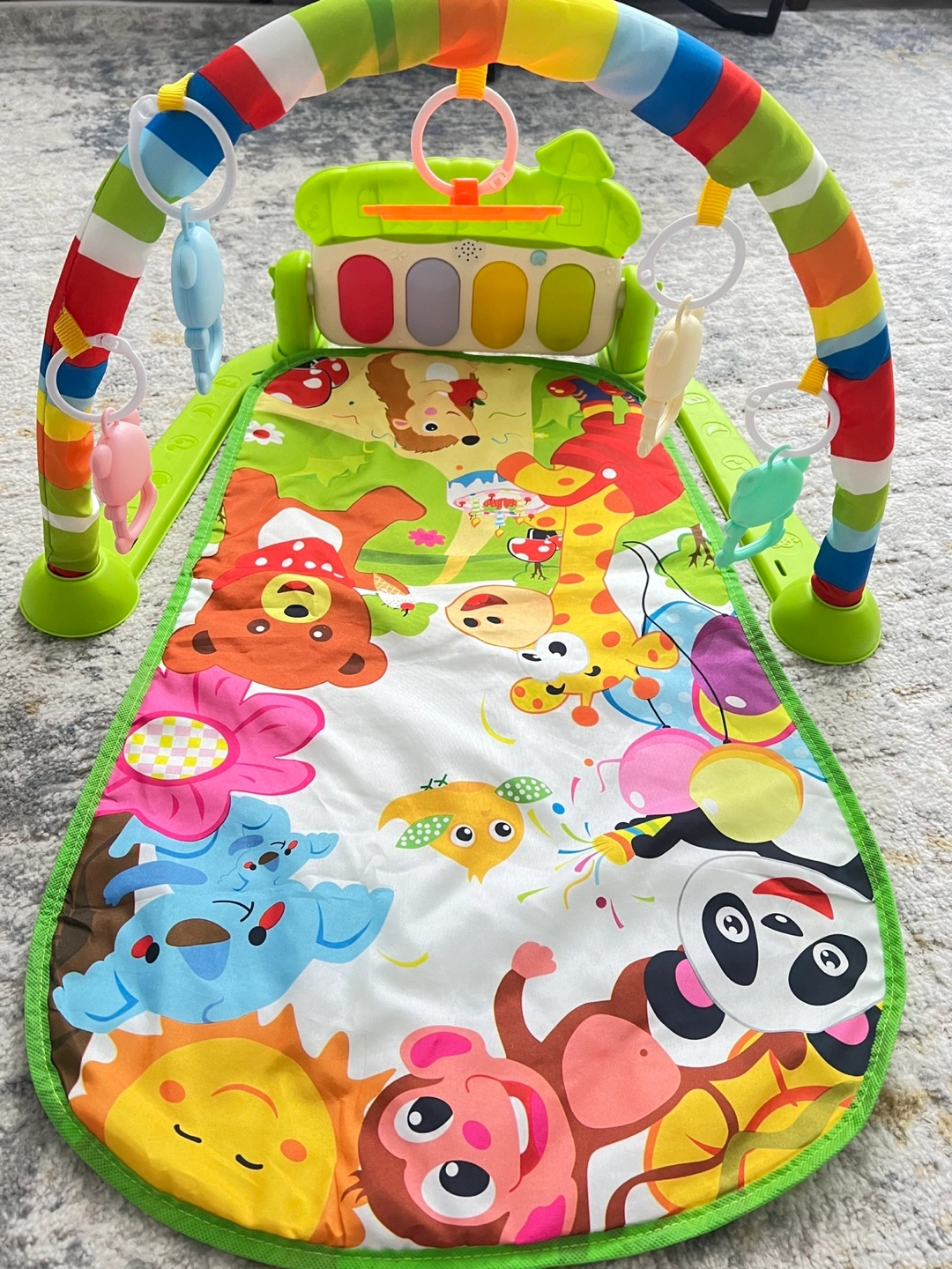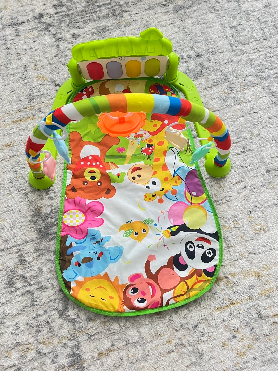 Selling a gently used (may be once or twice) baby play mat with a piano feature! It's in great shape and ready for a new little one to enjoy. The mat is colourful and features various animal designs, plus hanging toys to keep your baby entertained. The piano can be played with hands or feet, adding a fun musical element to playtime
