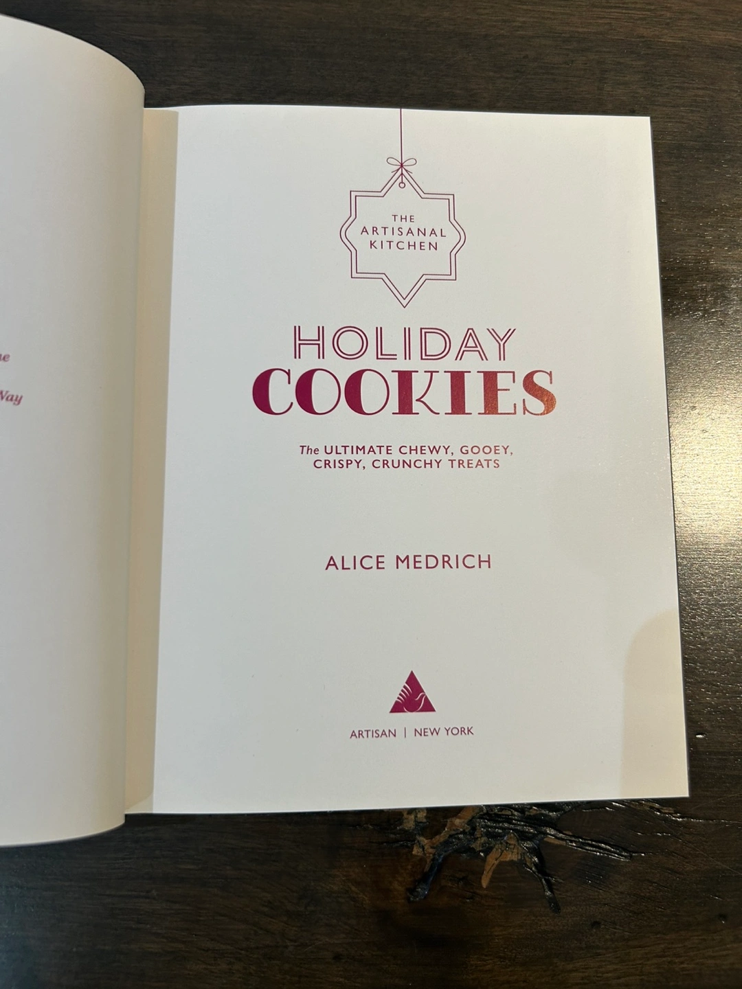 Selling a copy of "Holiday Cookies" by Alice Medrich, from The Artisanal Kitchen series! It's full of recipes for ultimate chewy, gooey, crispy, crunchy treats. Perfect for getting into the holiday baking spirit