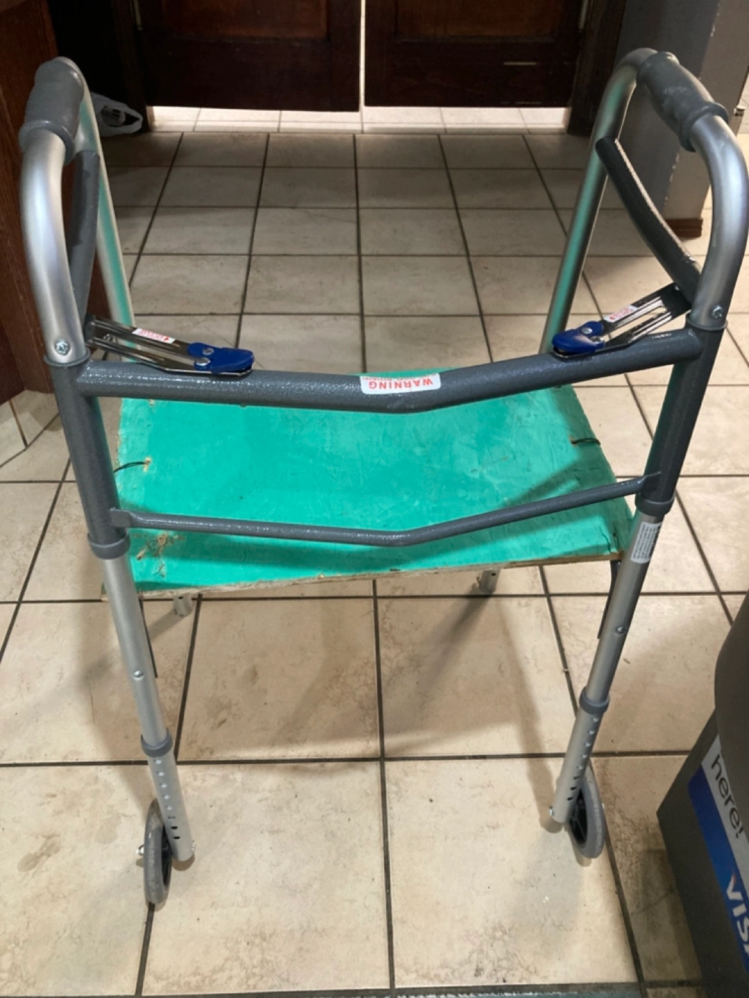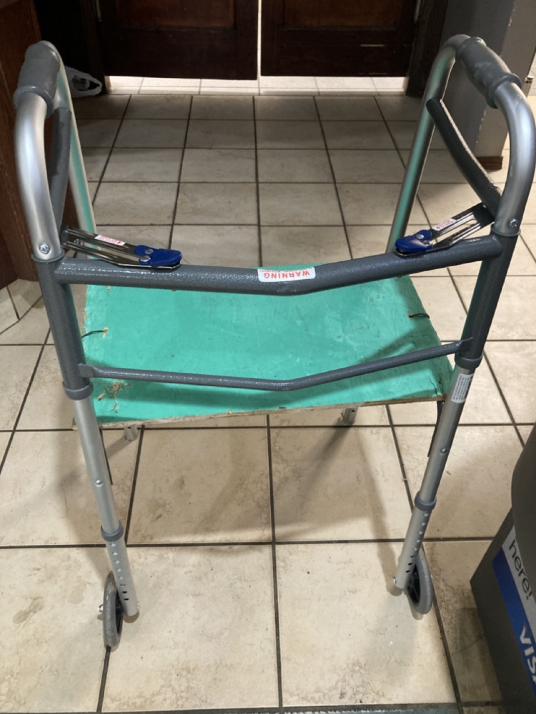 Selling a walker with a seat. Seat can easily be removed if need be. It's in good working condition and ready to help someone get around safely. Perfect for indoor or outdoor use