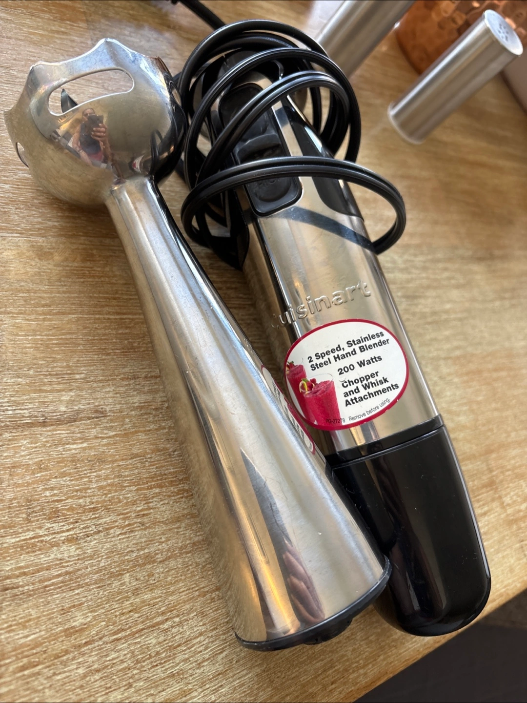 Selling a Cuisinart 2-Speed Stainless Steel Hand Blender! It's a 200-watt blender with chopper and whisk attachments. Great for making smoothies or soups!