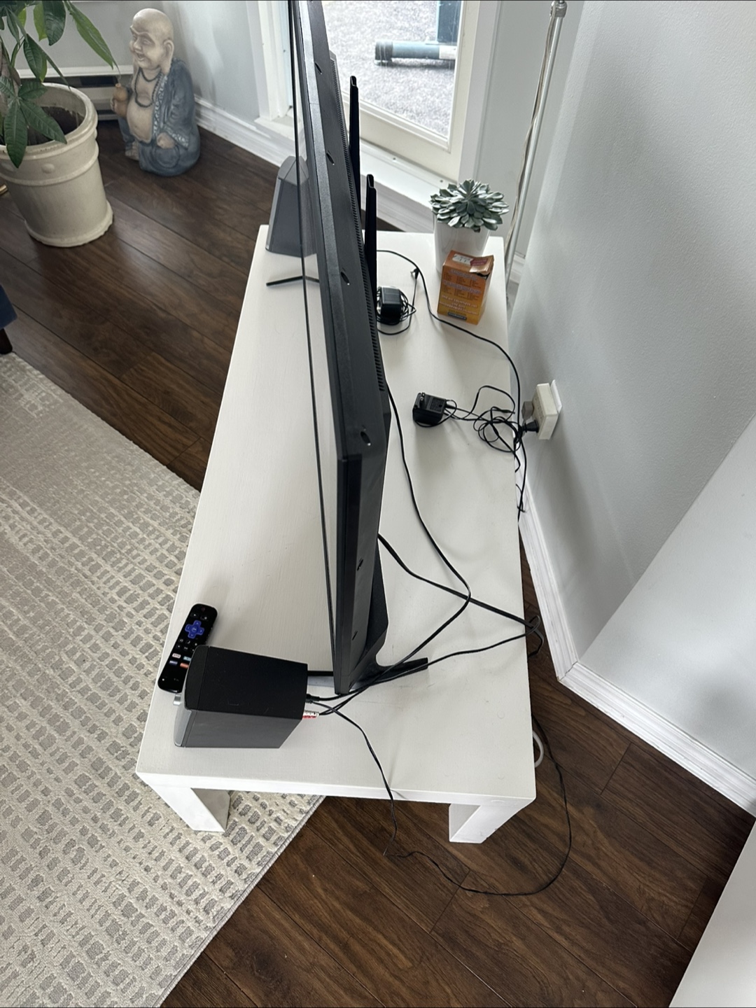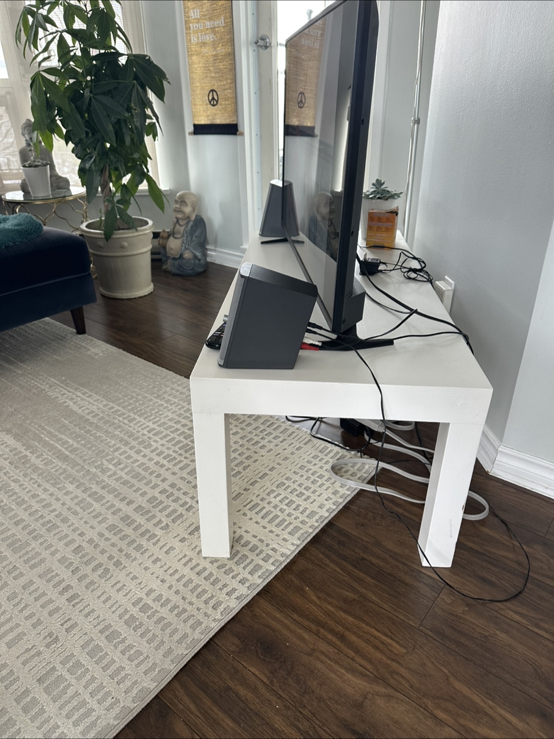 Selling a simple white TV stand! It's in good condition and ready for a new home. Perfect for a minimalist look in your living room or entertainment area.