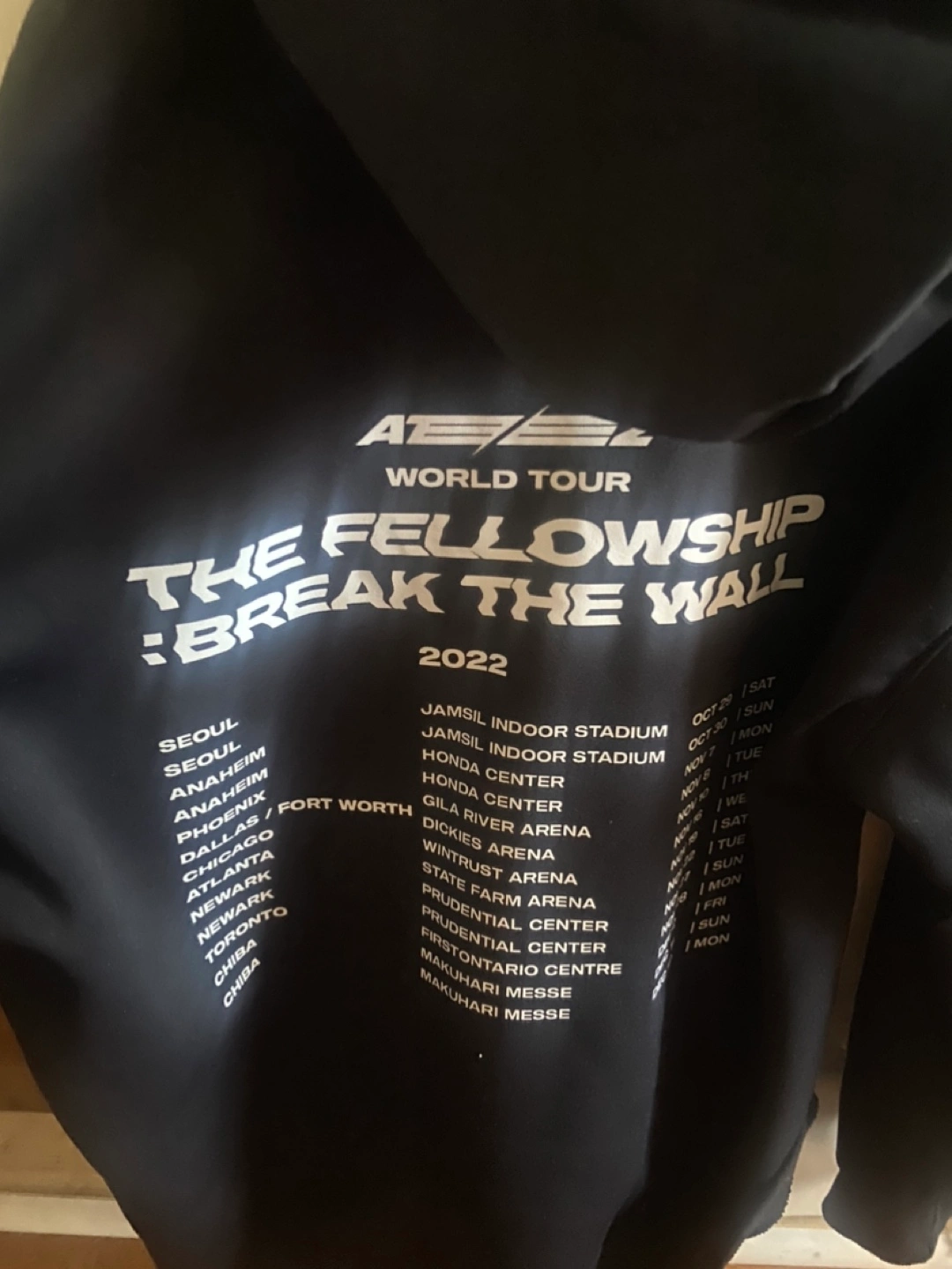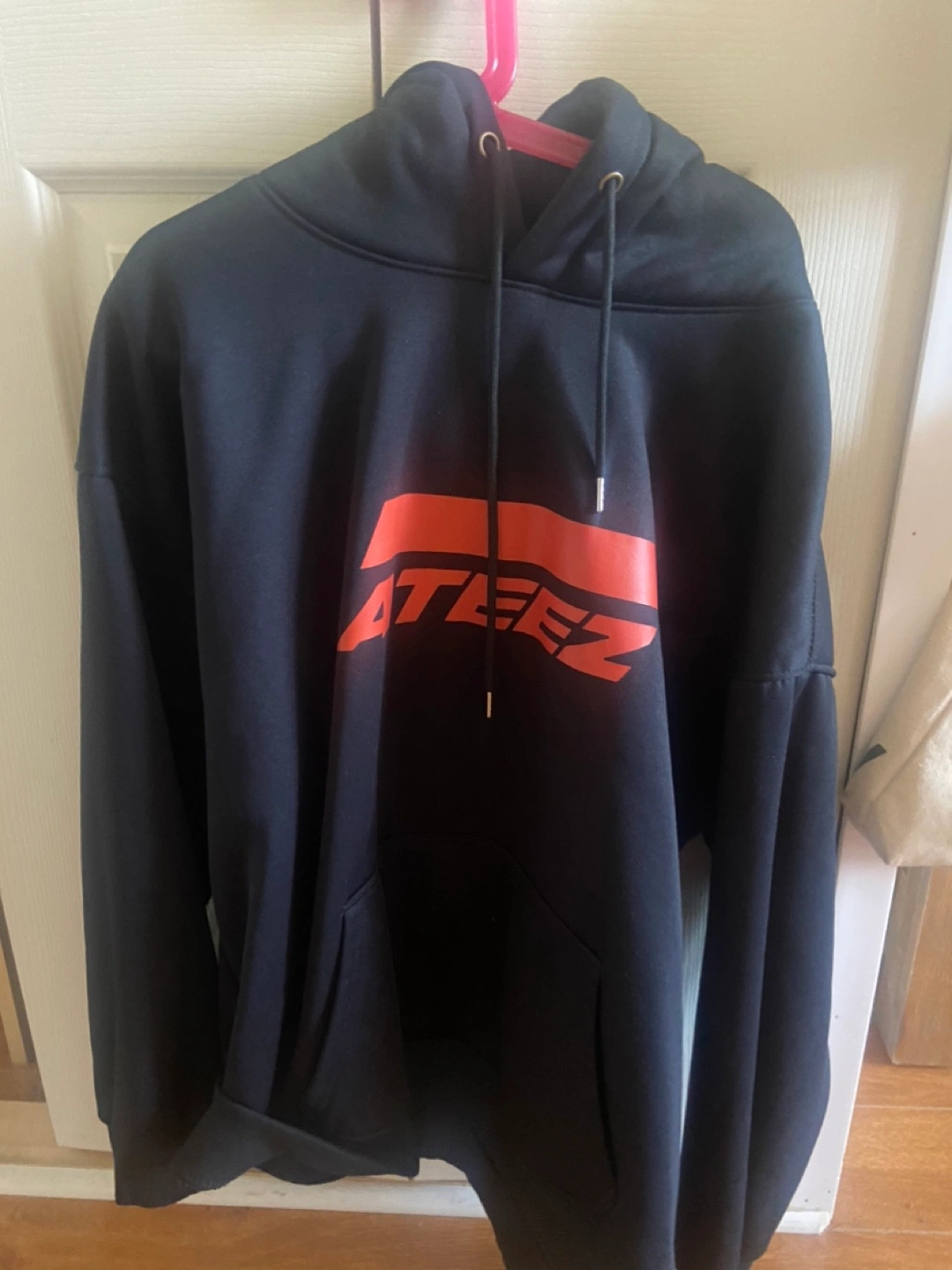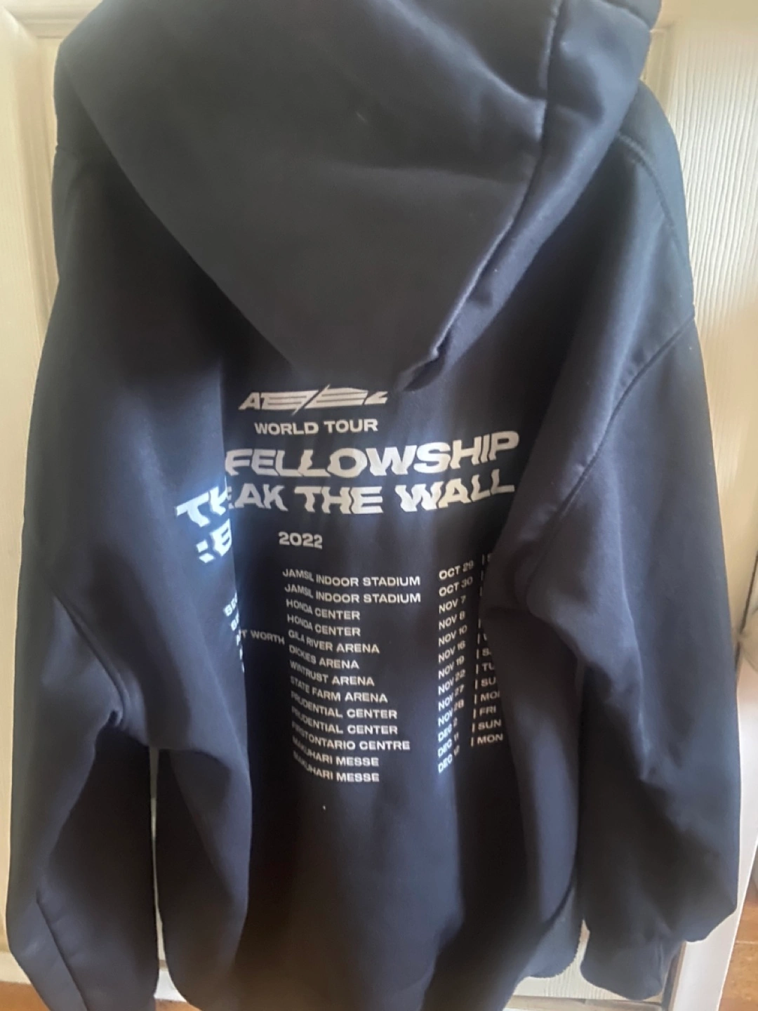 Black hoodie featuring the ATEEZ logo on the front and the "The Fellowship: Break The Wall" tour dates on the back.
