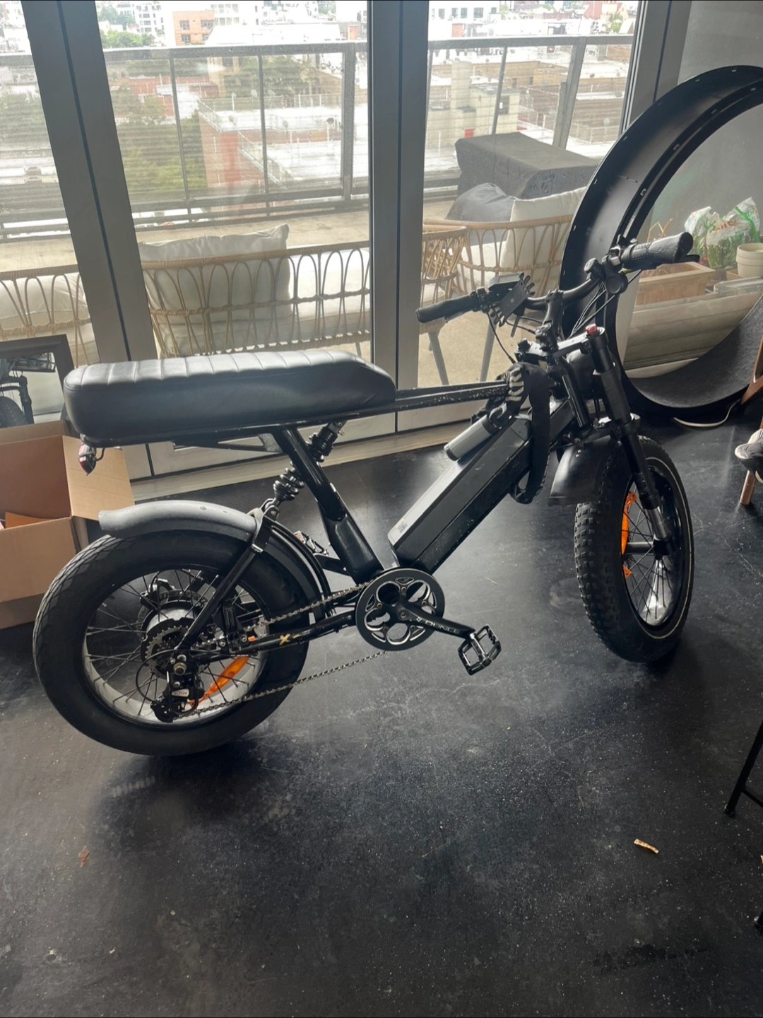 Class 2 electric bicycle (compliant with NYC regulations) that can reach ~35mph. Both custom 2 person seat and original 1 person seat are included.