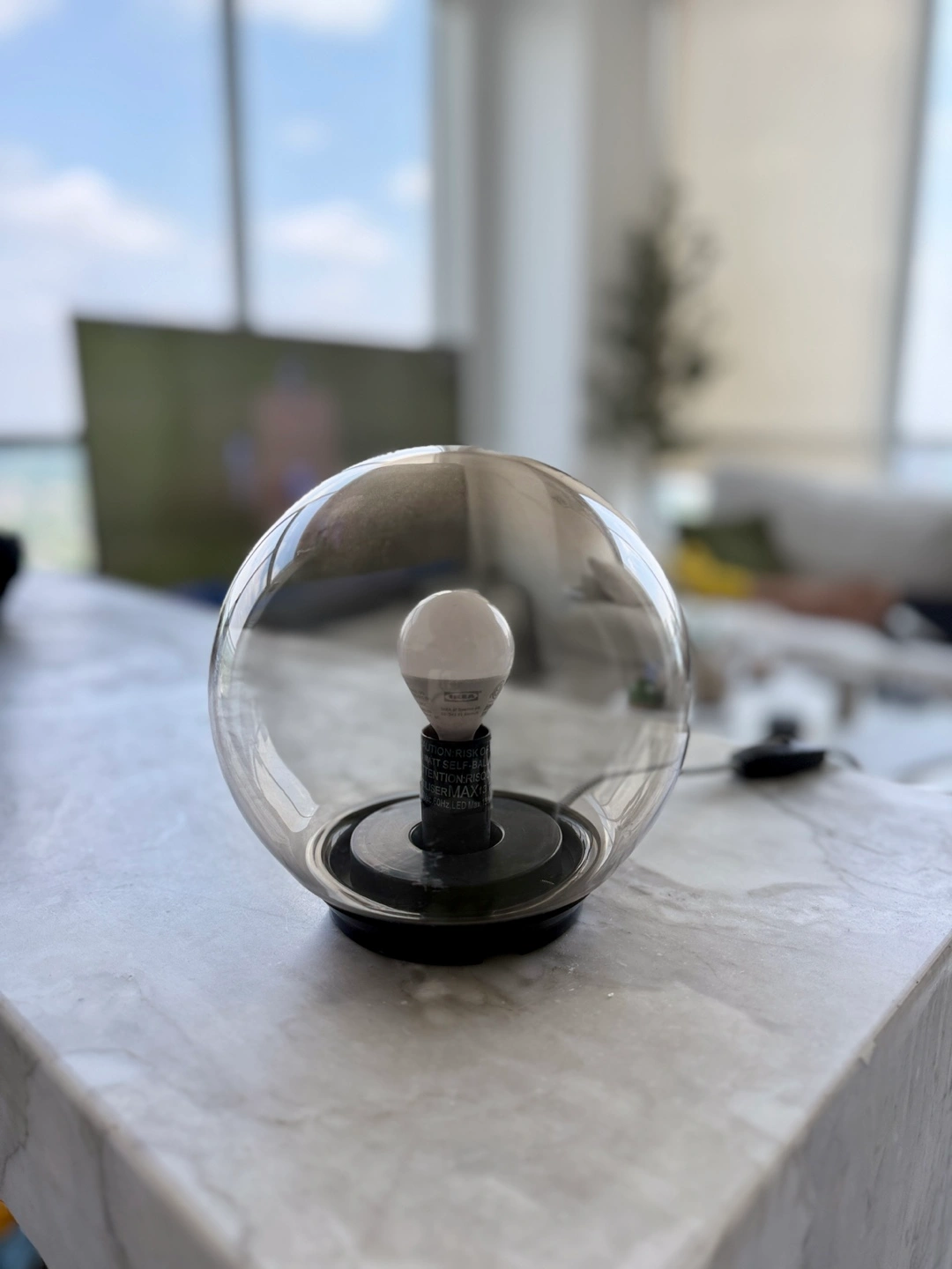 Selling a like-new IKEA FADO lamp in rare grey—this colour is no longer available in stores. The frosted glass globe gives off a soft, cozy glow.