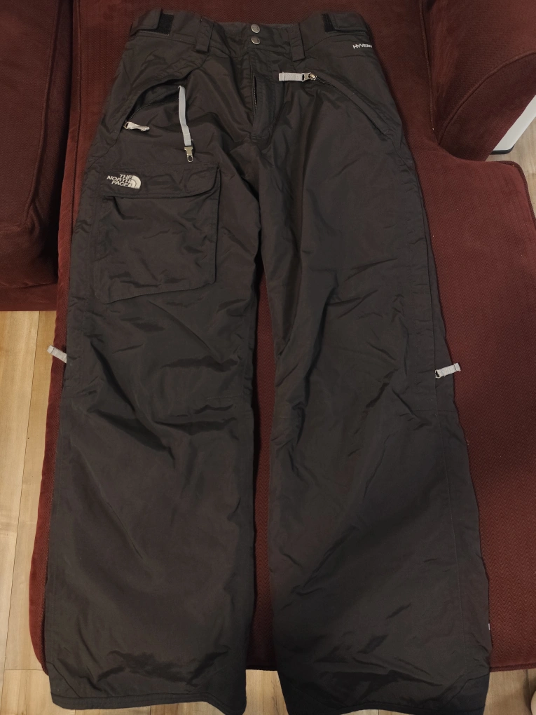 Selling a pair of The North Face Hyvent snow pants in size medium. They're in fair condition with details that doesn't affect it's quality. All zippers working.