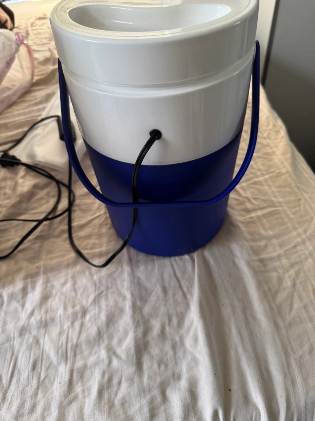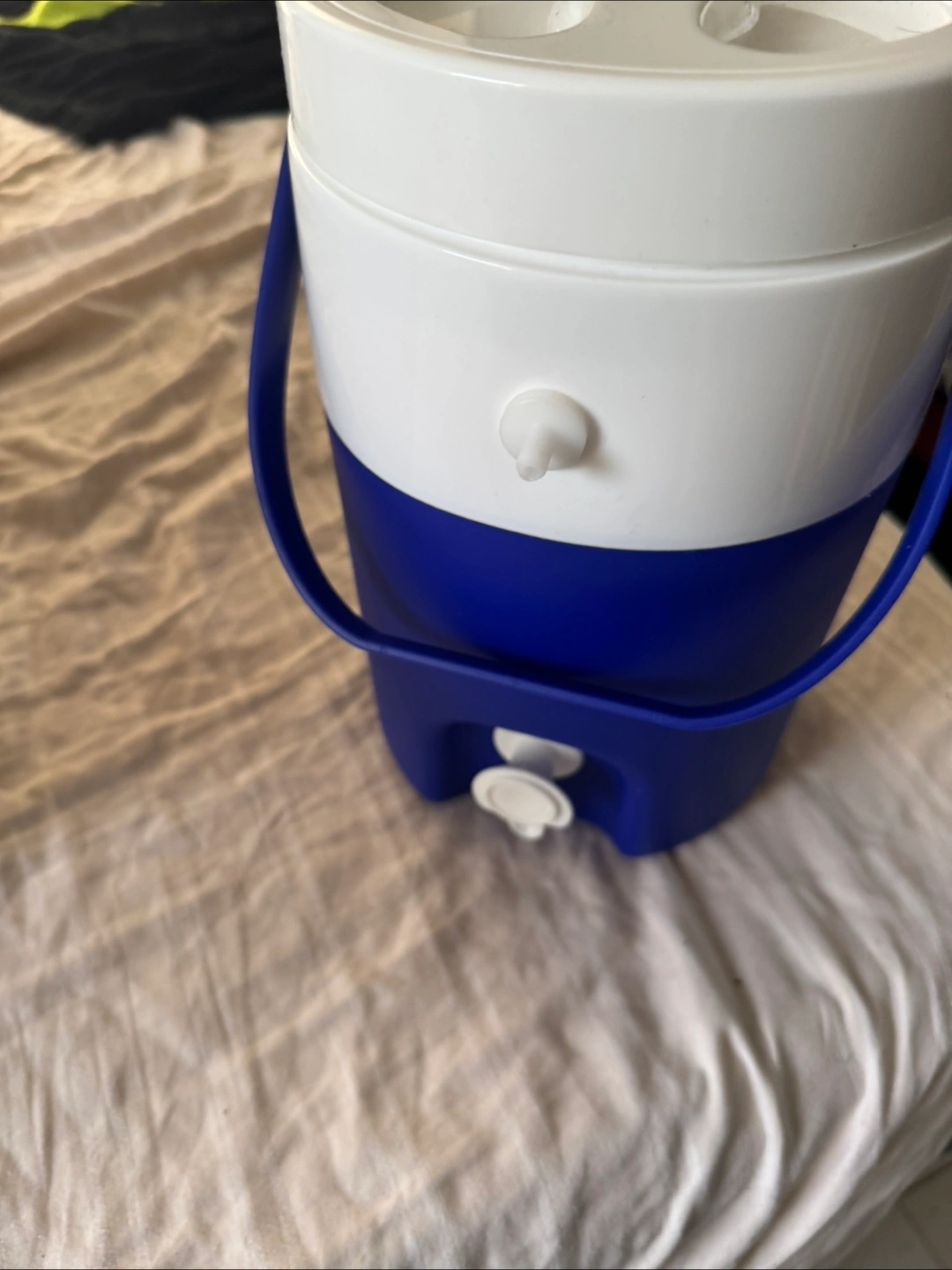 Selling a water cooler dispenser in blue and white. It's in good condition and ready to use! Perfect for keeping your water cold and easily accessible