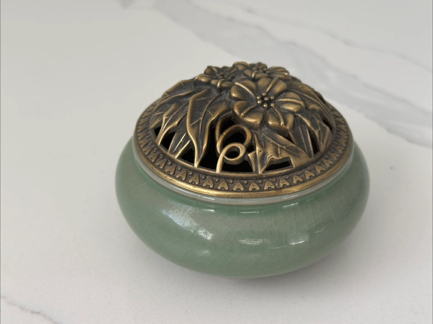 Ceramic Incense Burner with Bronze Floral Design