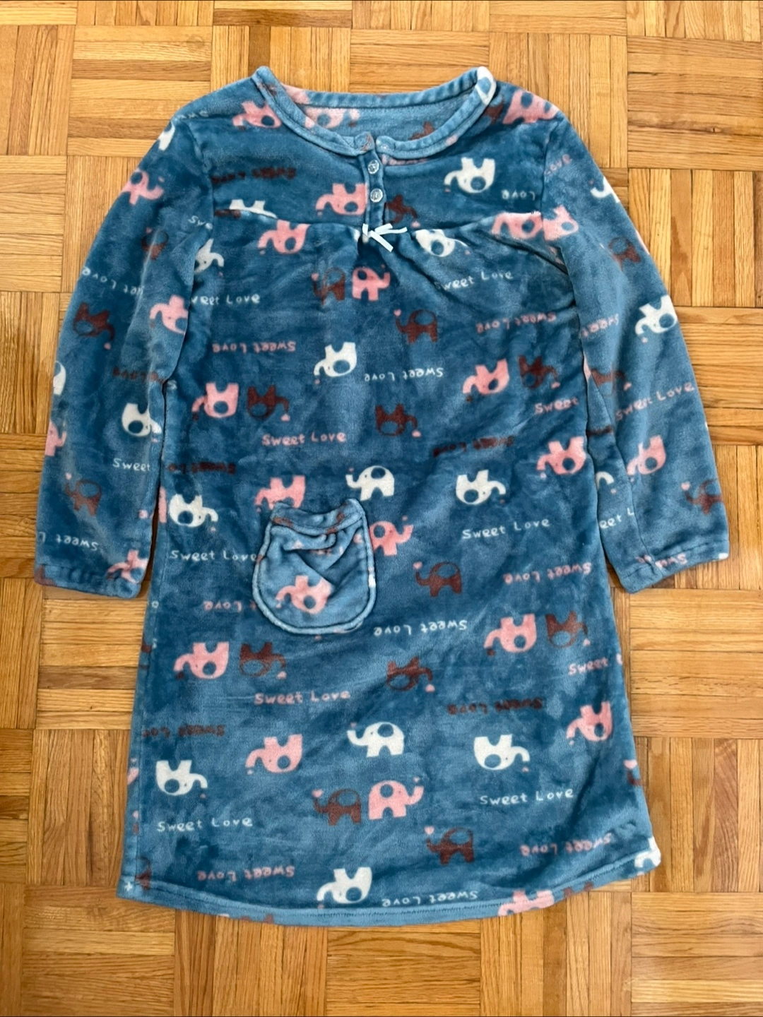 Fleece pyjama dress from South Korea. Purchased in Seoul from a local street vendor. Extremely soft and comfy, even got a pocket too. Giving away as it takes too much space in the closet.