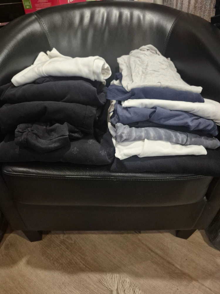 Selling a mixed lot of clothing items in various sizes and colours! There are shirts, sweats, hoodies and other items in the pile. All are in good condition and ready for a new home