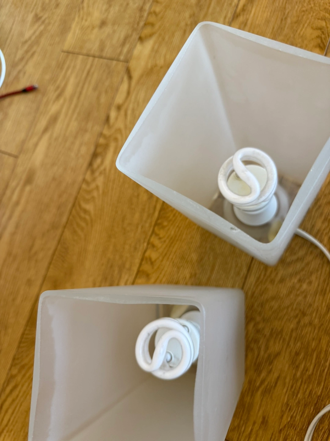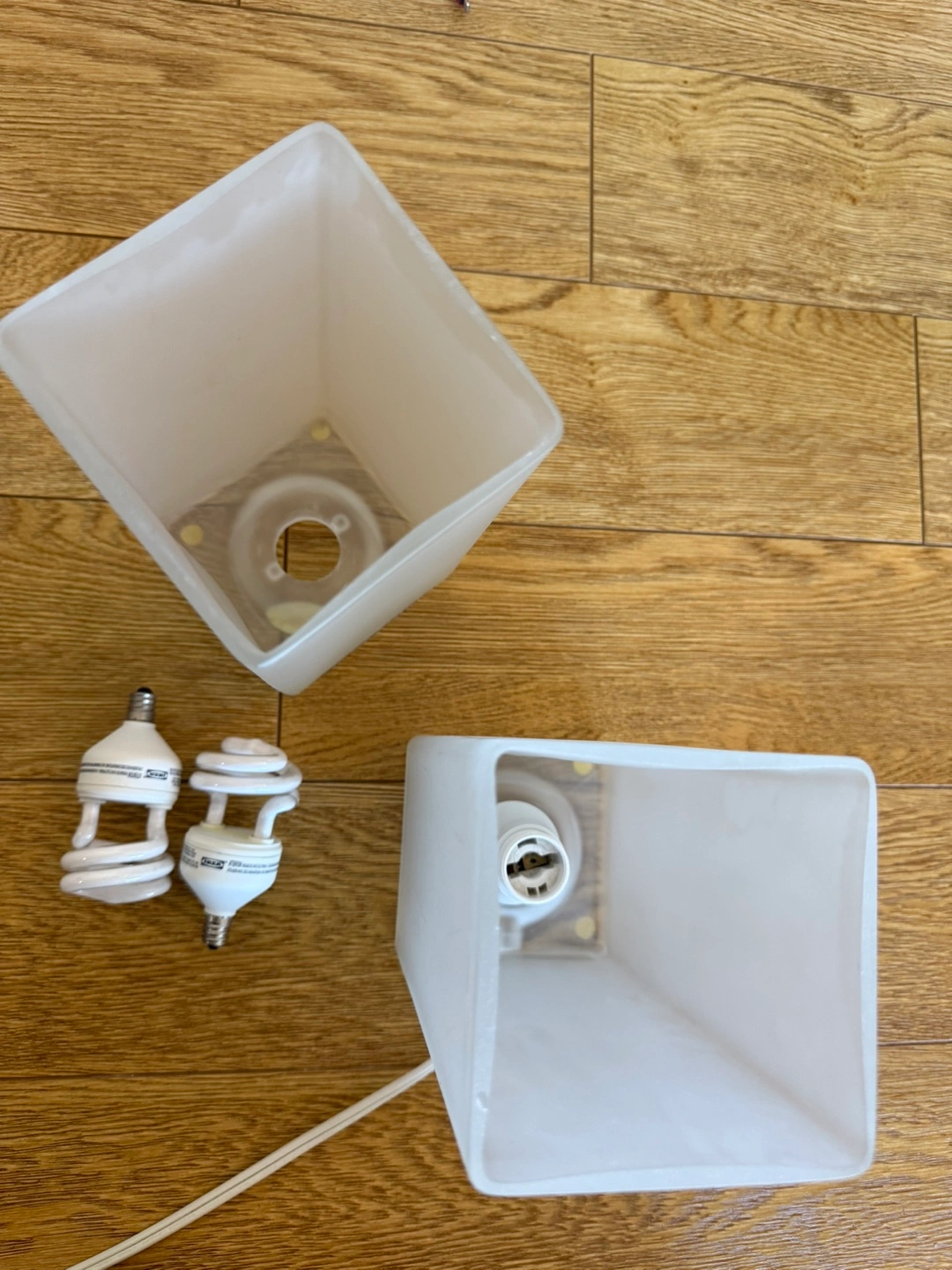 Selling a pair of IKEA table lamps. They come with the lightbulbs shown in the pictures. Each lamp has a max 40 watt Type B bulb. The lamps could be easily taken apart for cleaning like shown in pics. Clean and ready to go. Perfect condition