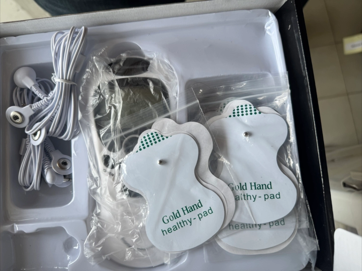 I'm selling a Health Herald Digital Therapy Machine! It comes with the box and includes components like the charger, user's manual, and Gold Hand healthy-pads