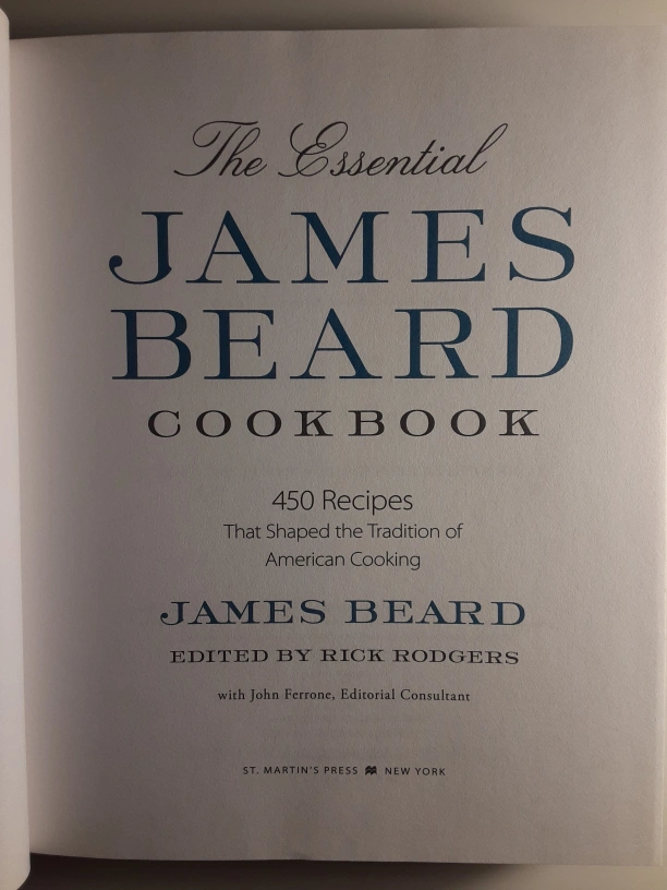 The Essential James Beard Cookbook, edited by Rick Rodgers. Hardcover edition with 450 recipes that shaped the tradition of American Cooking.