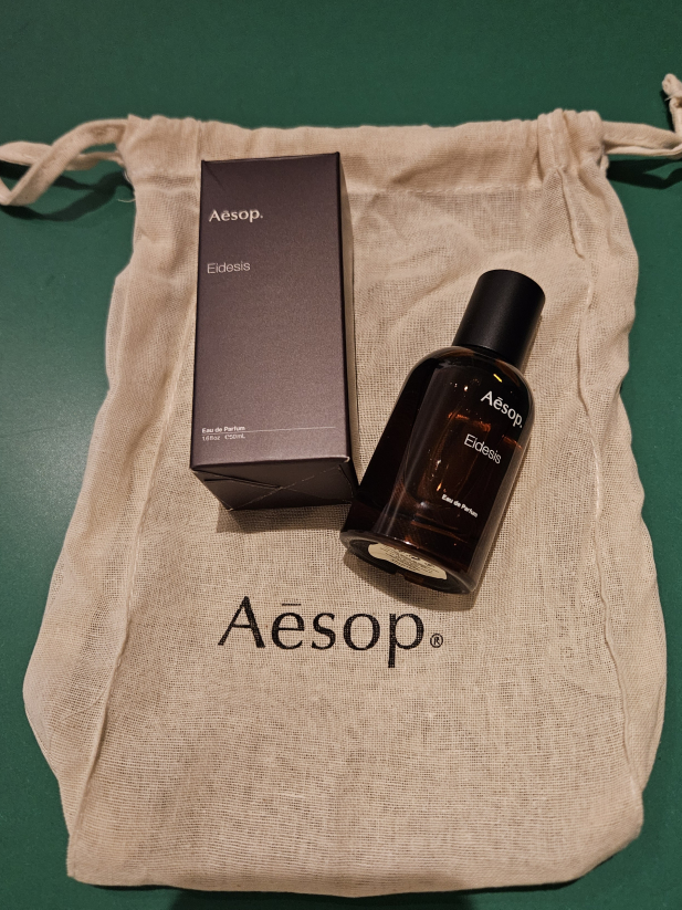 Selling a bottle of Aesop Eidesis Eau de Parfum. It comes in a 50mL bottle and includes the original box and bag. The top part of box is a bit damaged.