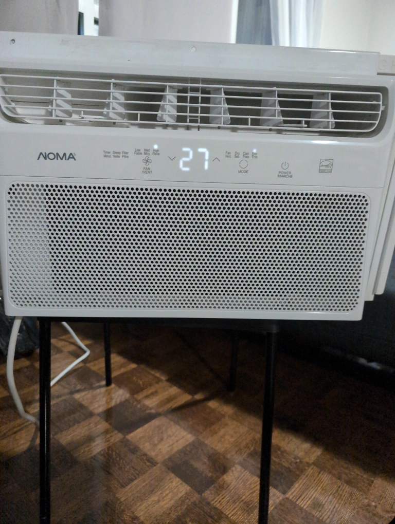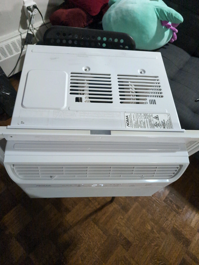 Selling a NOMA window type air conditioner, model number 043-8609-4. It has a cooling capacity of 6000 BTU/h and uses refrigerant R32. It's in good working condition and ready to keep you cool!