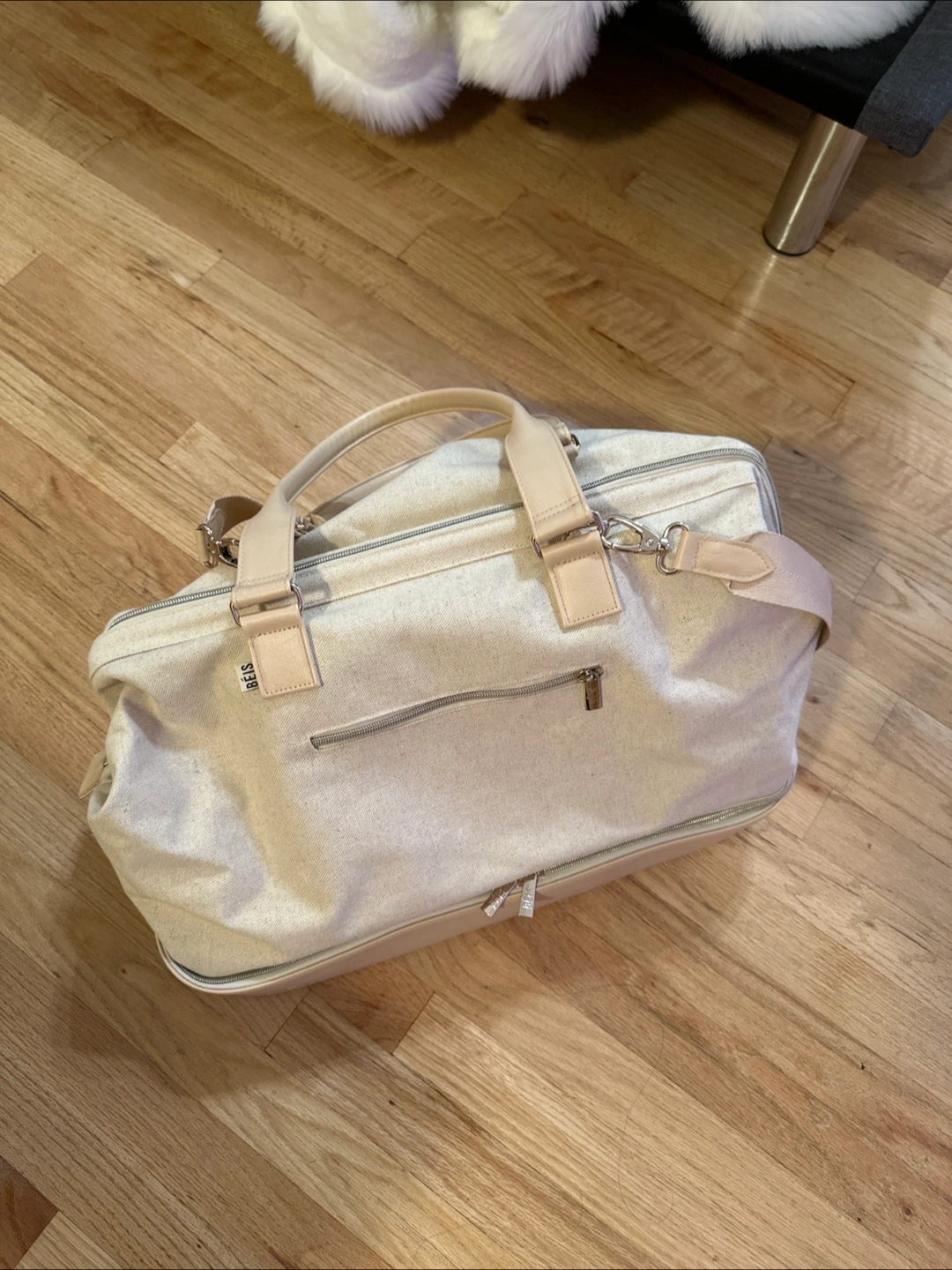 Selling a BEIS travel bag in beige. It's in great condition (only used it twice) and ready for your next adventure! Perfect for weekend getaways or as a carry-on. Selling because I’m moving out of state and I need to downsize.