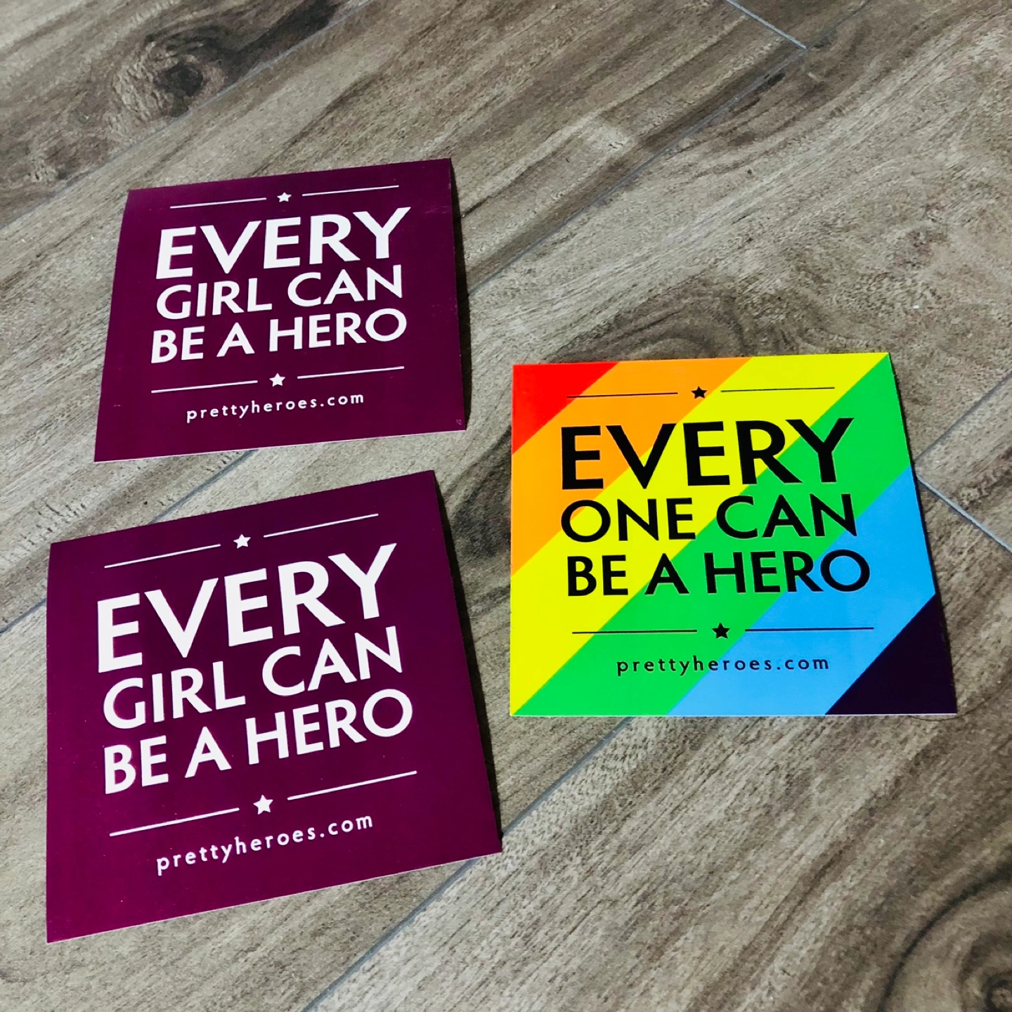 FREE Giveaway: a set of stickers from Pretty Heroes! They say 'Every Girl Can Be A Hero' and 'Every One Can Be A Hero'. Great for adding some flair to your laptop, water bottle, or anywhere else you want to stick them