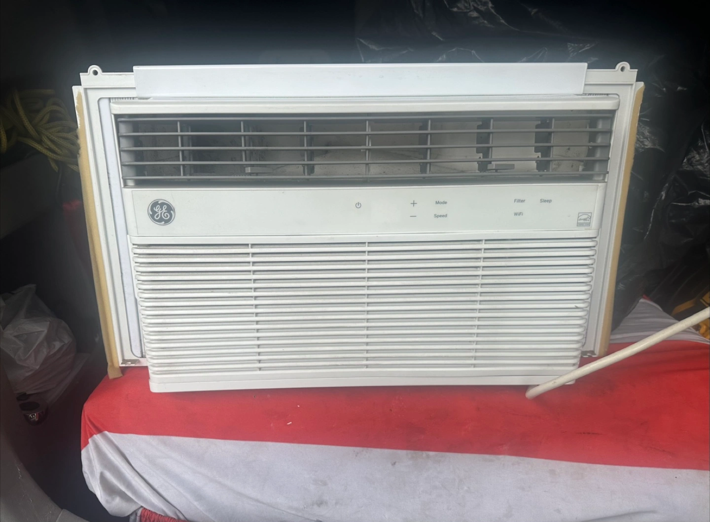 Selling a GE window air conditioner. It features multiple modes, speed settings, and a sleep function. It also has a filter and WiFi connectivity for convenient control remote included. Serious inquiries only!