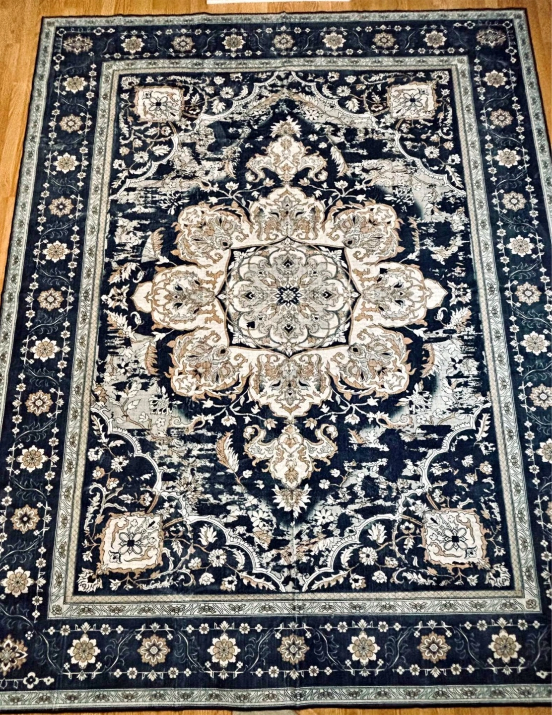 Brand new 5x7ft soft area rug. This stylish soft area rug is designed with lovely floral design in multi colors of navy blue, black and golden. Non slip, machine washable and easy to clean. Perfect for living room, bedroom, dining room, office or business center. Pick up in NW. Pet and smoke free home. 🍀Size: 5x7ft 🍀Color/Pattern: Navy Blue, Black/Multi color This color is also available in the size of 8x10ft and 3x5ft.