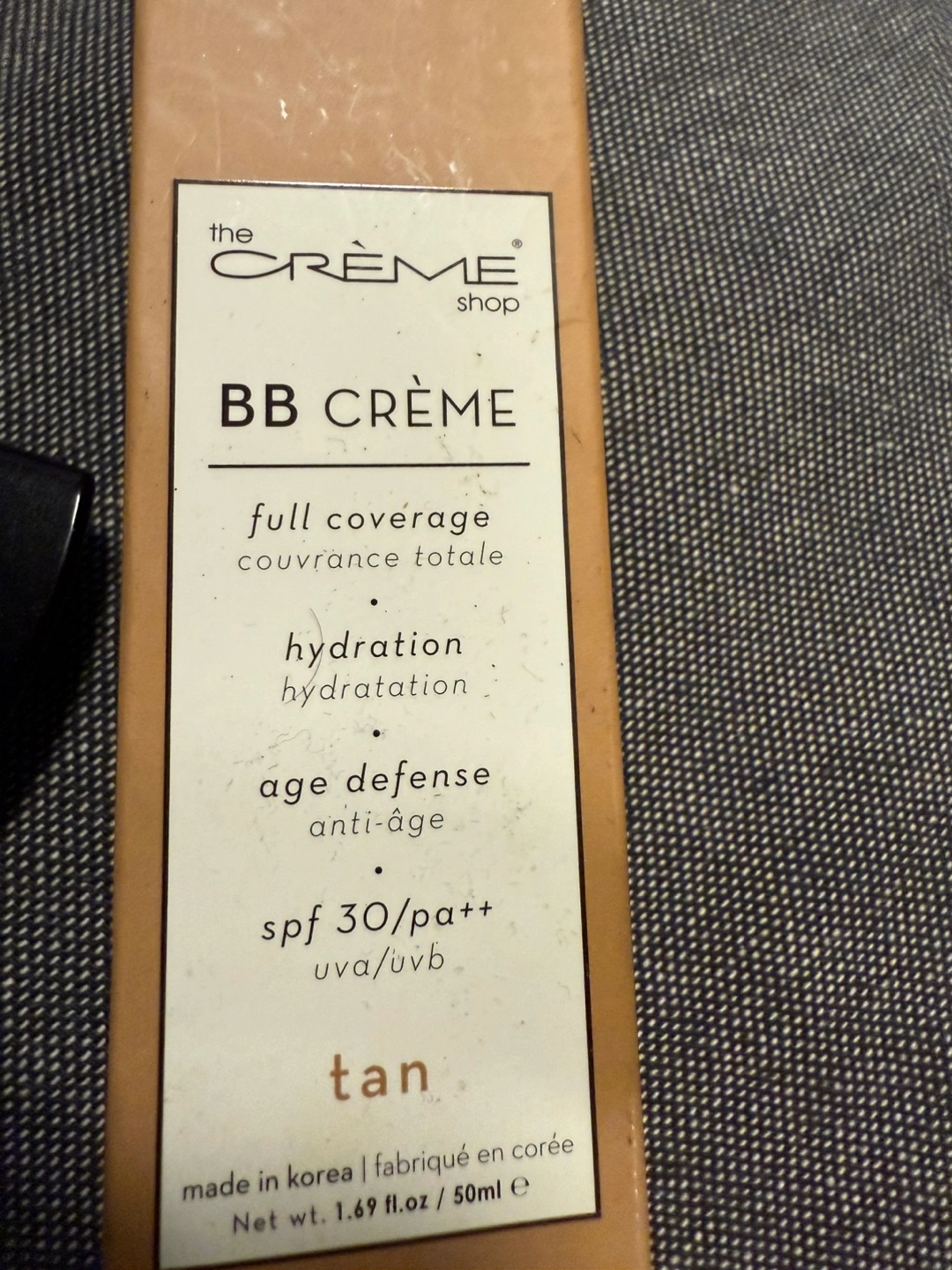 Selling The Crème Shop BB Crème with SPF 30 in the shade Tan. It provides full coverage with hydration and age defense. The formula is designed in Los Angeles and made in Korea. Net weight is 1.69 fl.oz / 50ml