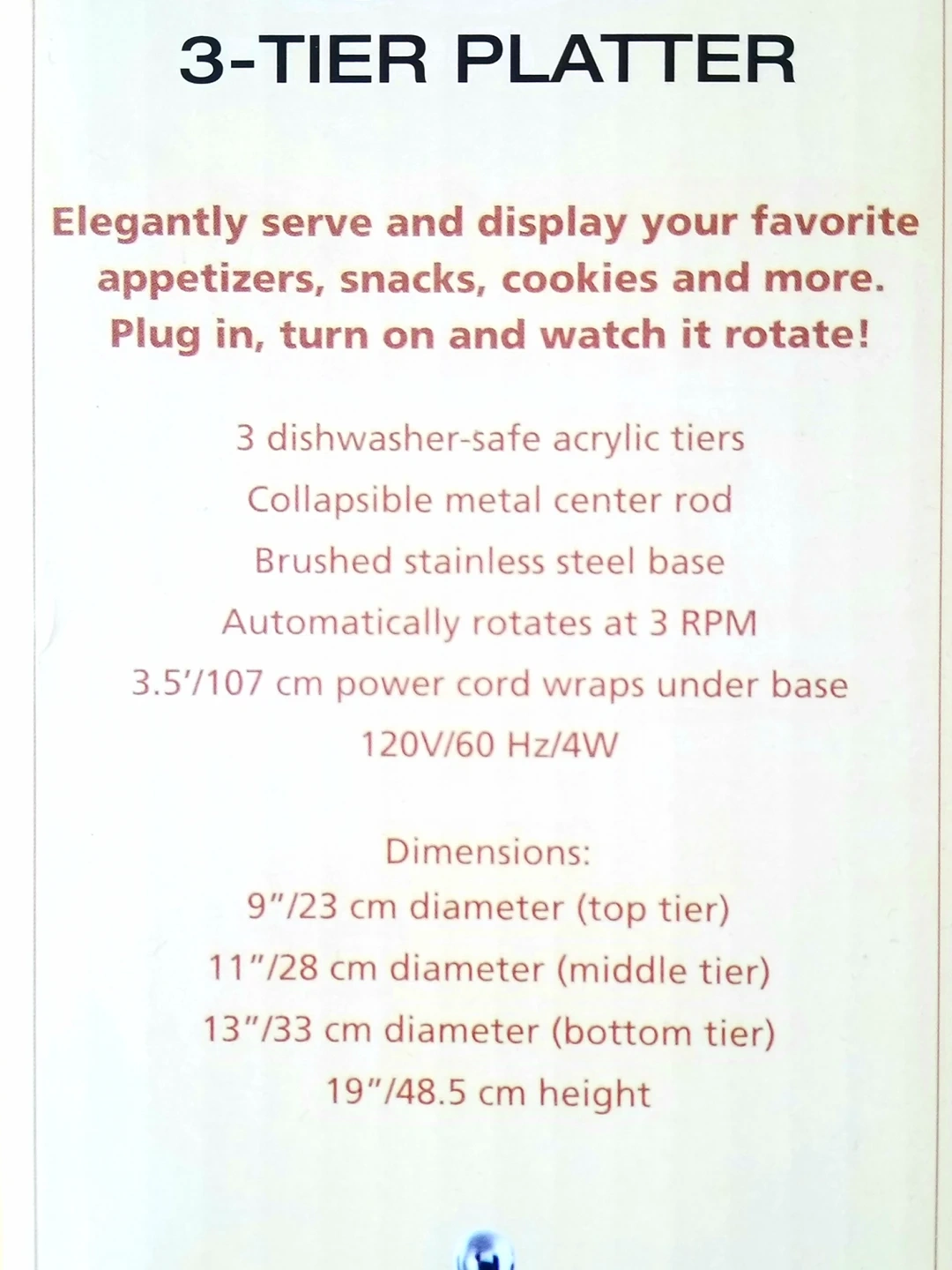 3 Tier electric Rotating display for dessert cupcakes or favors