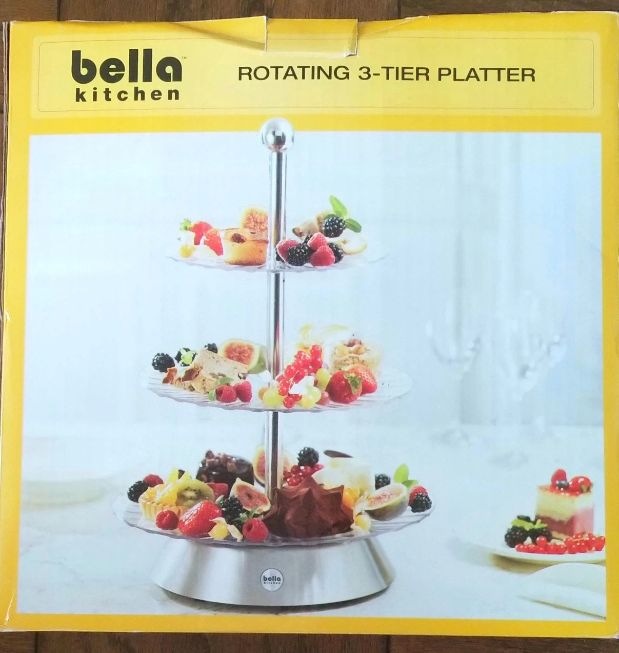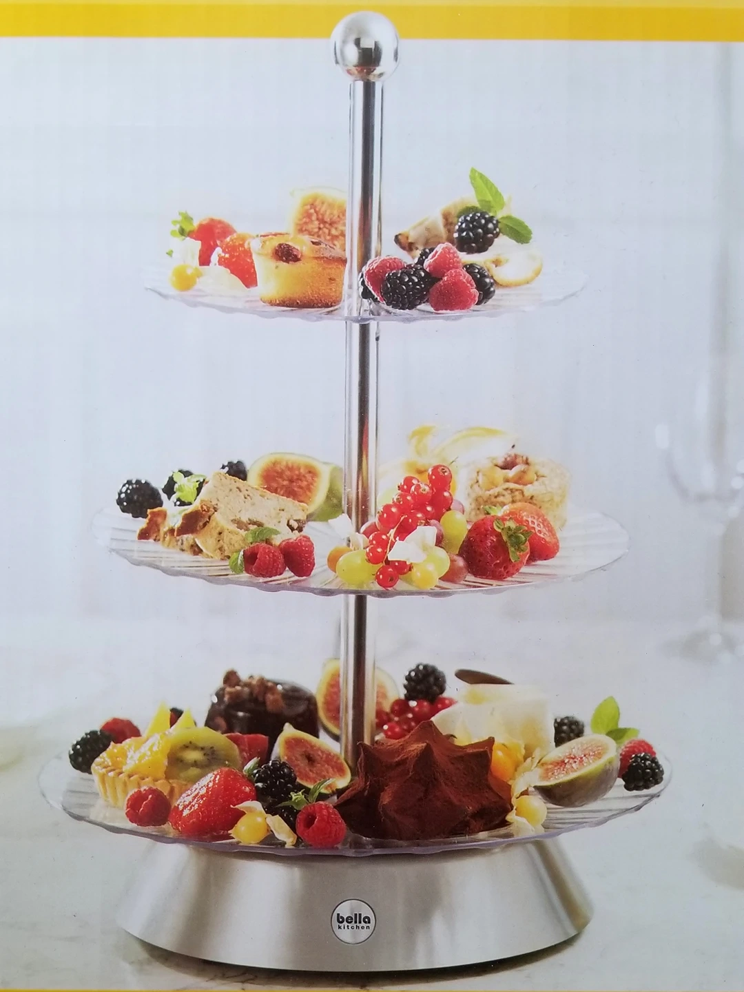 this beautiful display is perfect for parties or home gatherings, store display. bakery or desserts. It is new in the box. for description and dimensions; swipe fotos.