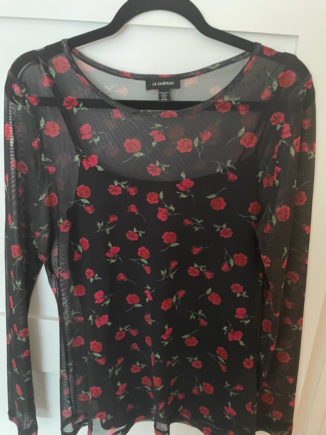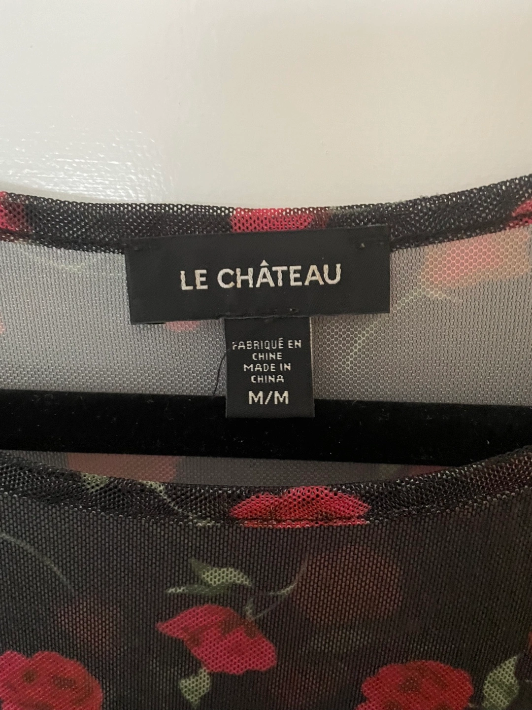 Cute Le Chateau mesh top with a floral pattern! It's a size medium.