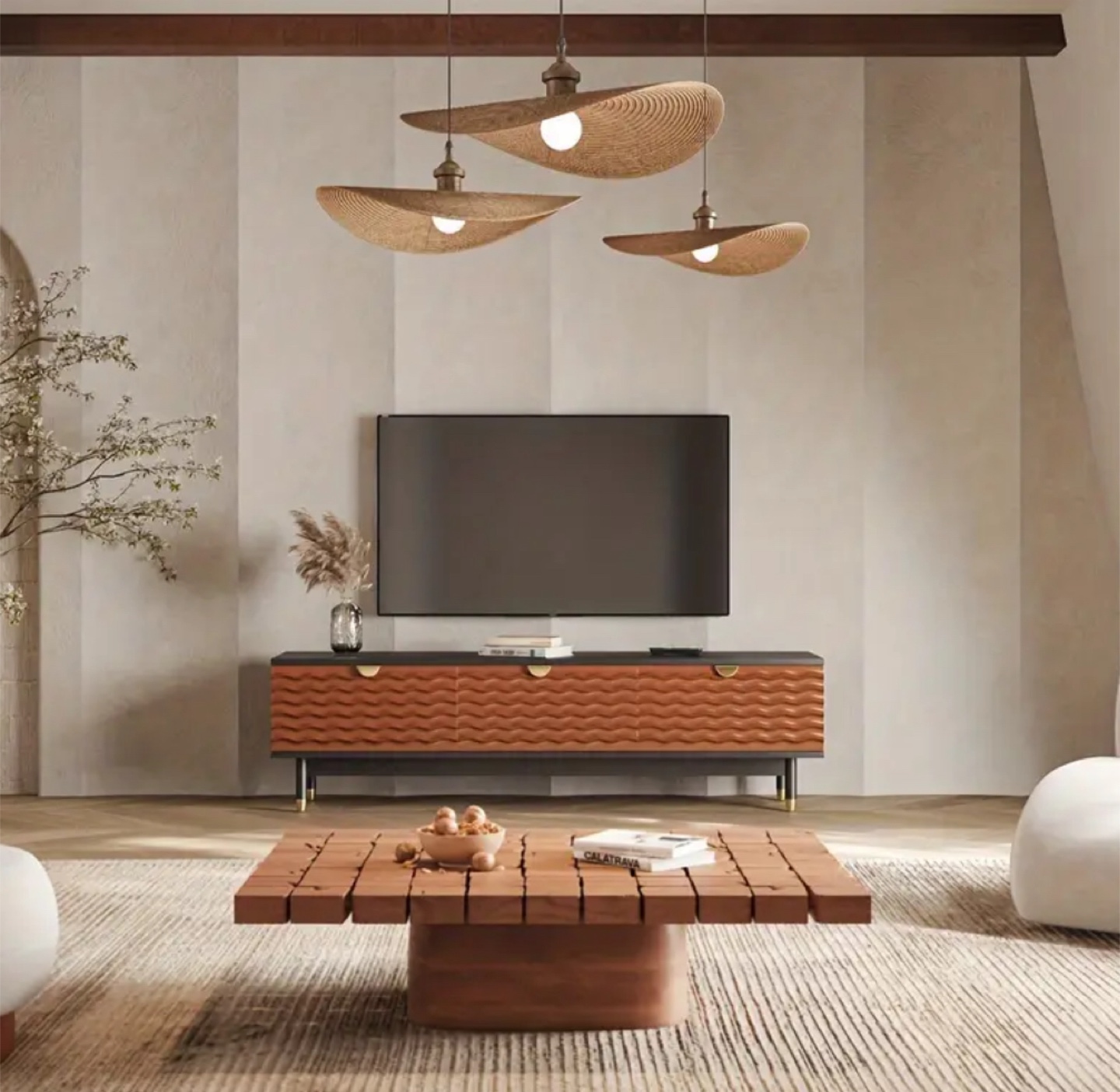 hernest 70” carved wood drawer TV console