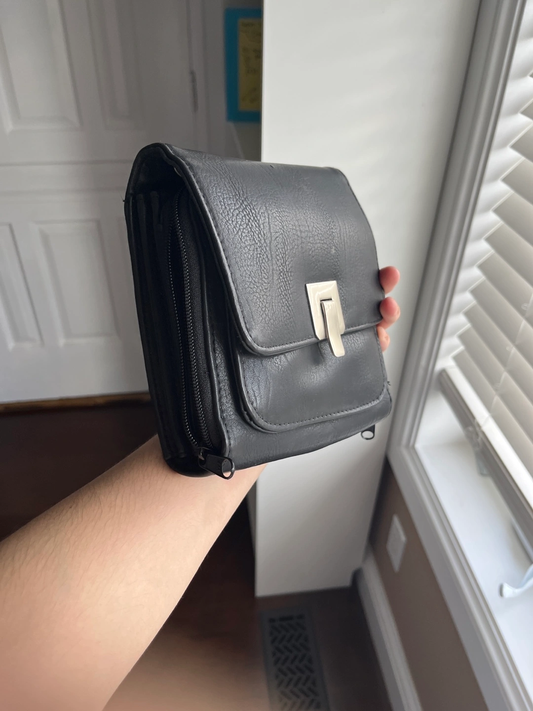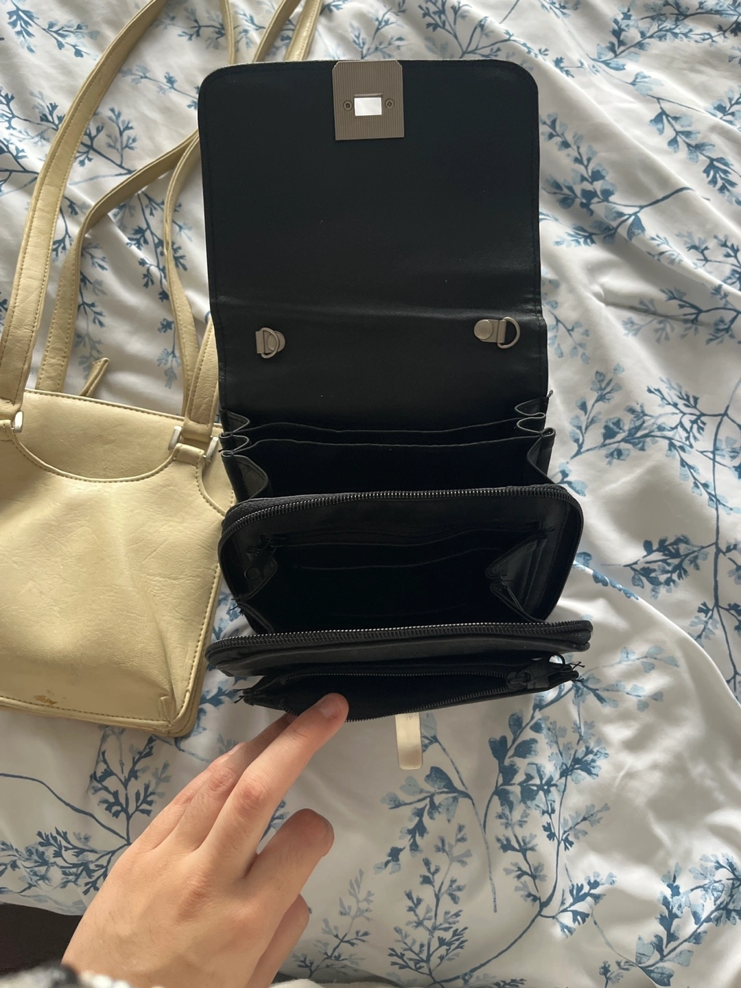 The black clutch had a strap I am unsure where it went but it is clean barely any damage and lots of space.