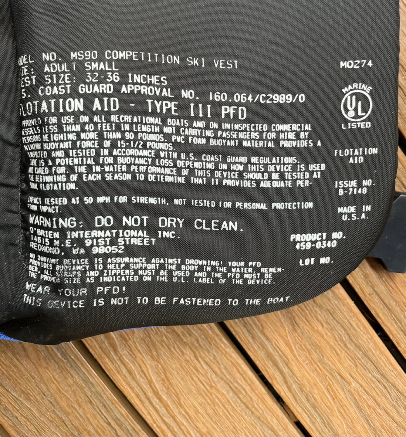 O'Brien Waterski Life Jacket - Small