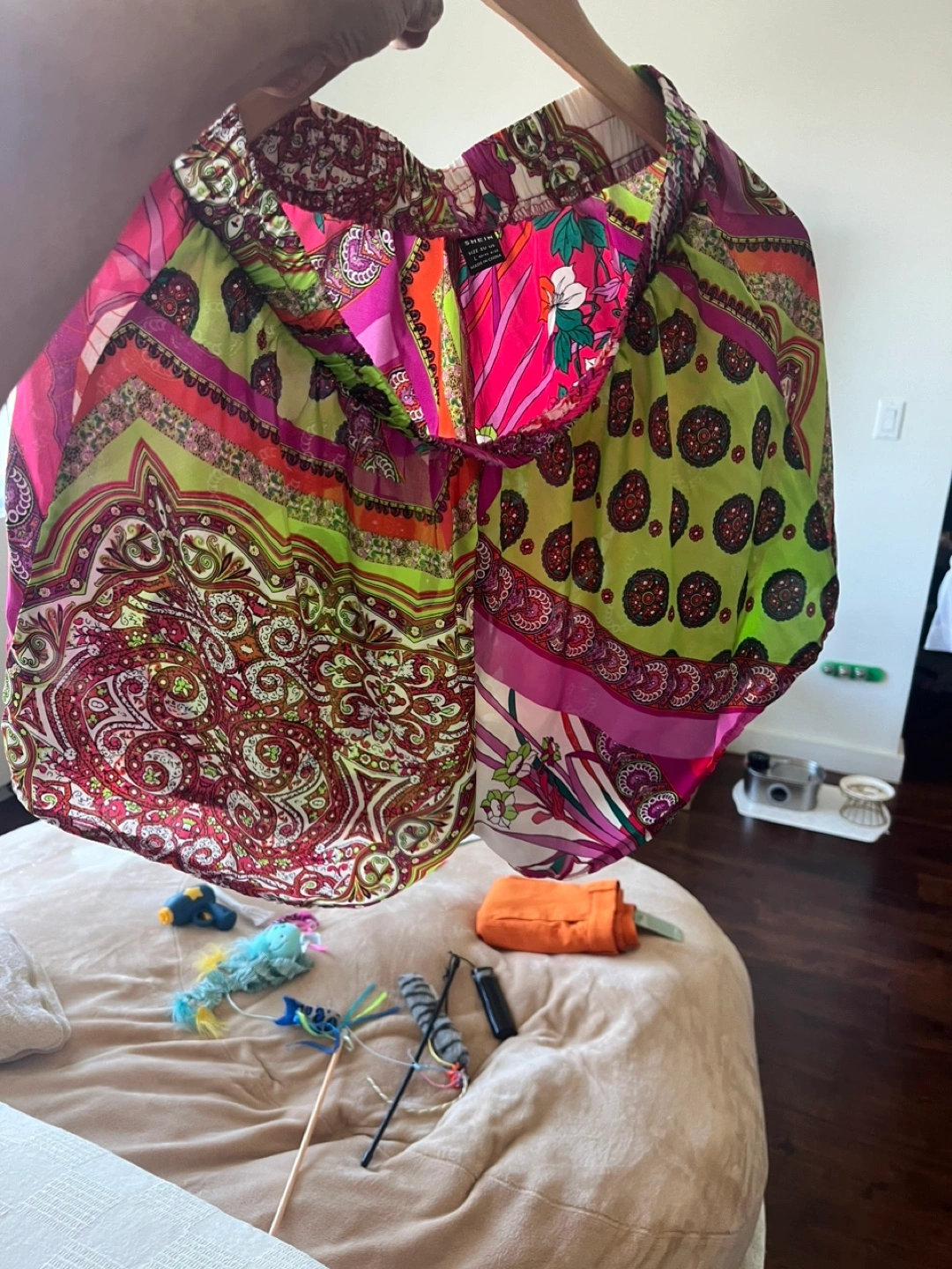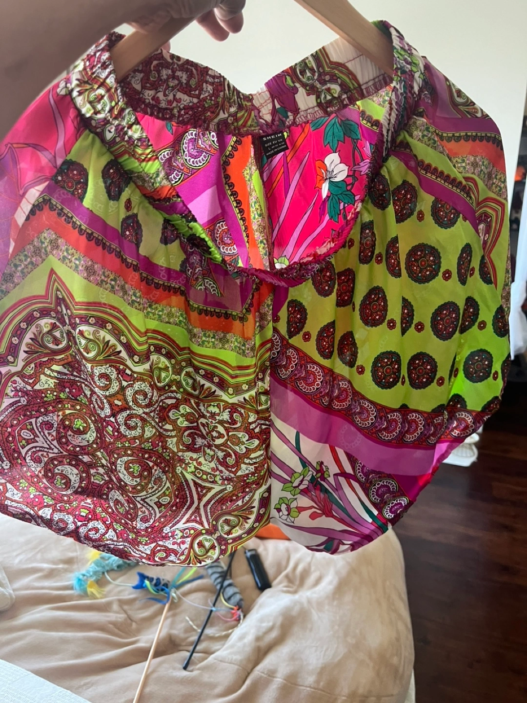 Cute and comfortable Shein shorts in a vibrant, colorful pattern! These are a size medium and perfect for lounging or a casual day out. The material is lightweight and breezy, making them great for warmer weather. Pre-washed and never worn.