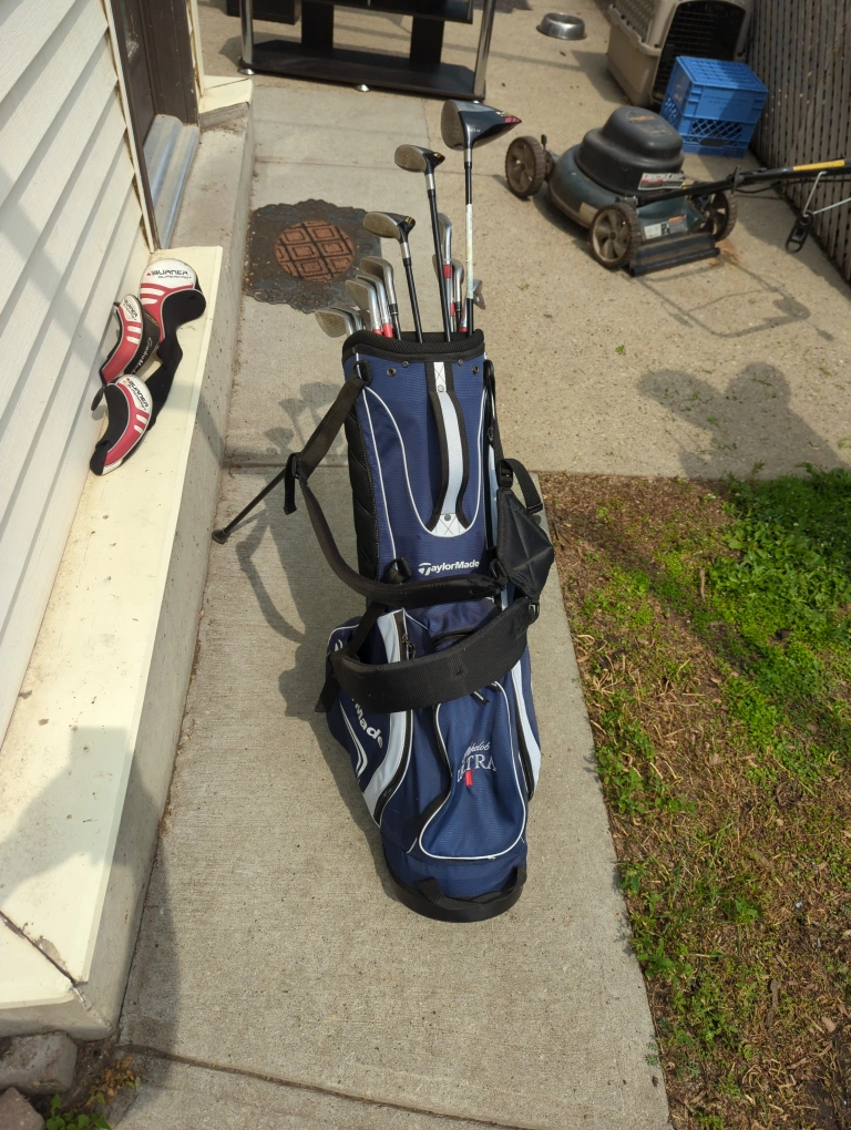 Selling a TaylorMade / Callaway mixed left hand golf club set, complete with a golf bag. It's in great shape and ready for the course. Perfect for anyone looking to upgrade their gear or get started with a quality set!