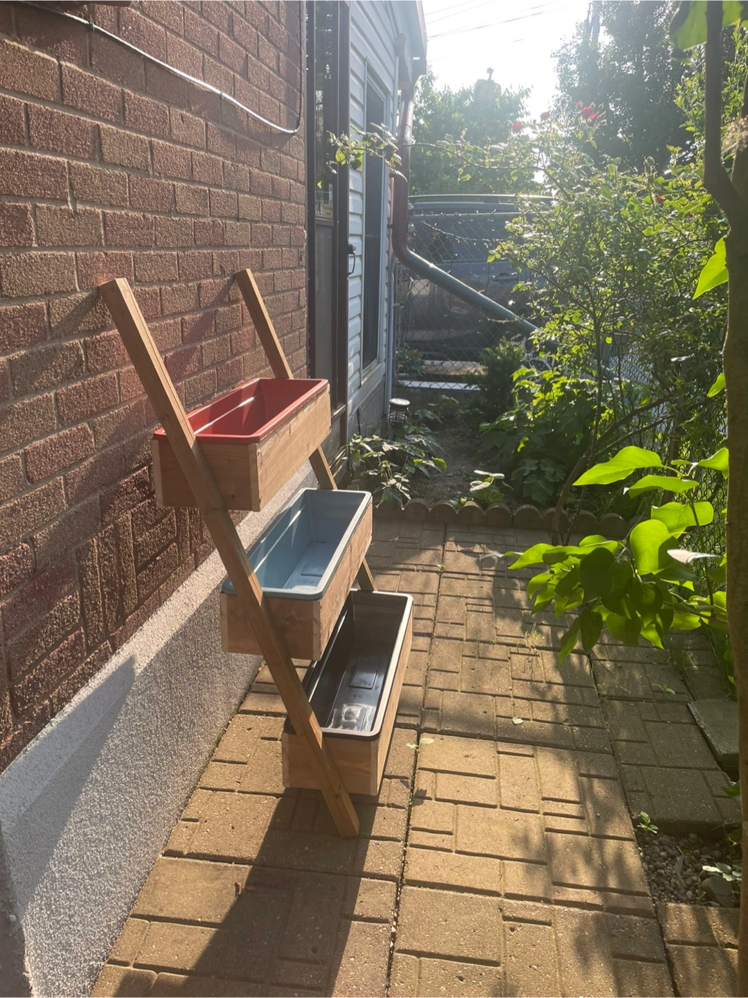 Raised planter ladder for Herbs, flowers or veggies. Great for outdoor, patios or balconies. Vertical garden bed. Convenient and removable for relocation and swapping.