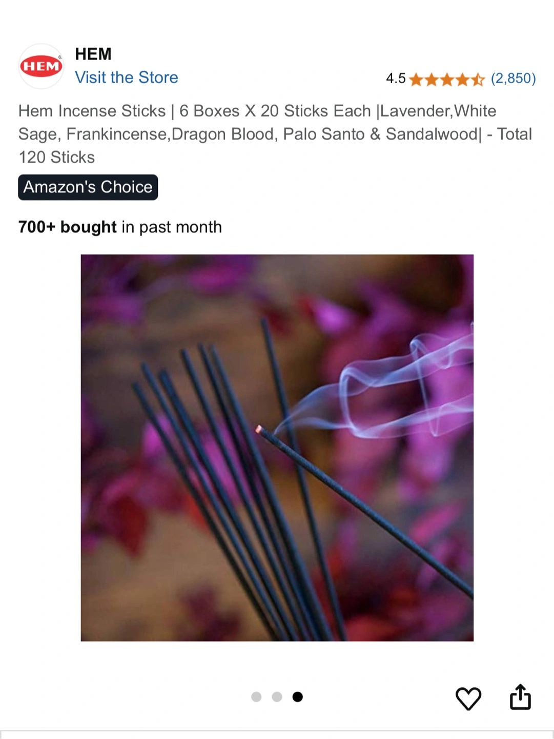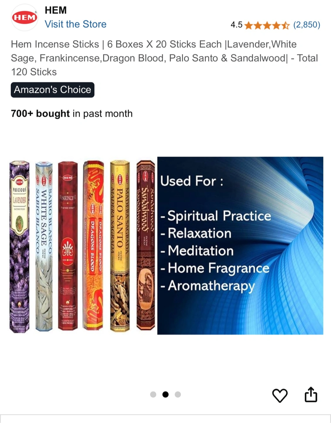 Selling HEM incense sticks, each box contains 10 sticks. You'll get 11 boxes in total! Great for relaxation, meditation, or just adding a nice scent to your space. Opened package.