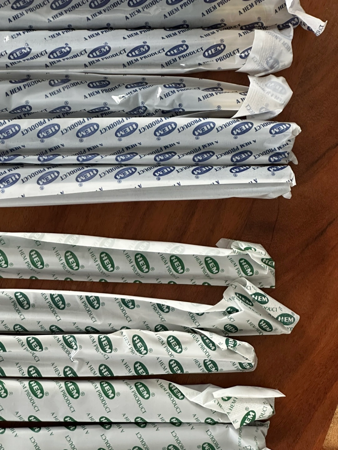 Selling HEM incense sticks, each box contains 10 sticks. You'll get 11 boxes in total! Great for relaxation, meditation, or just adding a nice scent to your space. Opened package.