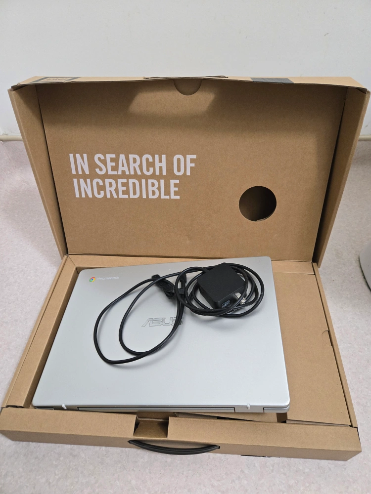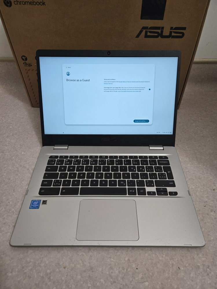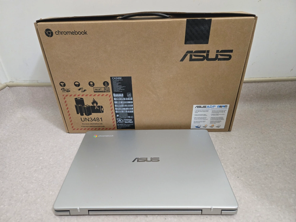 Selling an ASUS C424M Chromebook in silver! It comes with the original box.