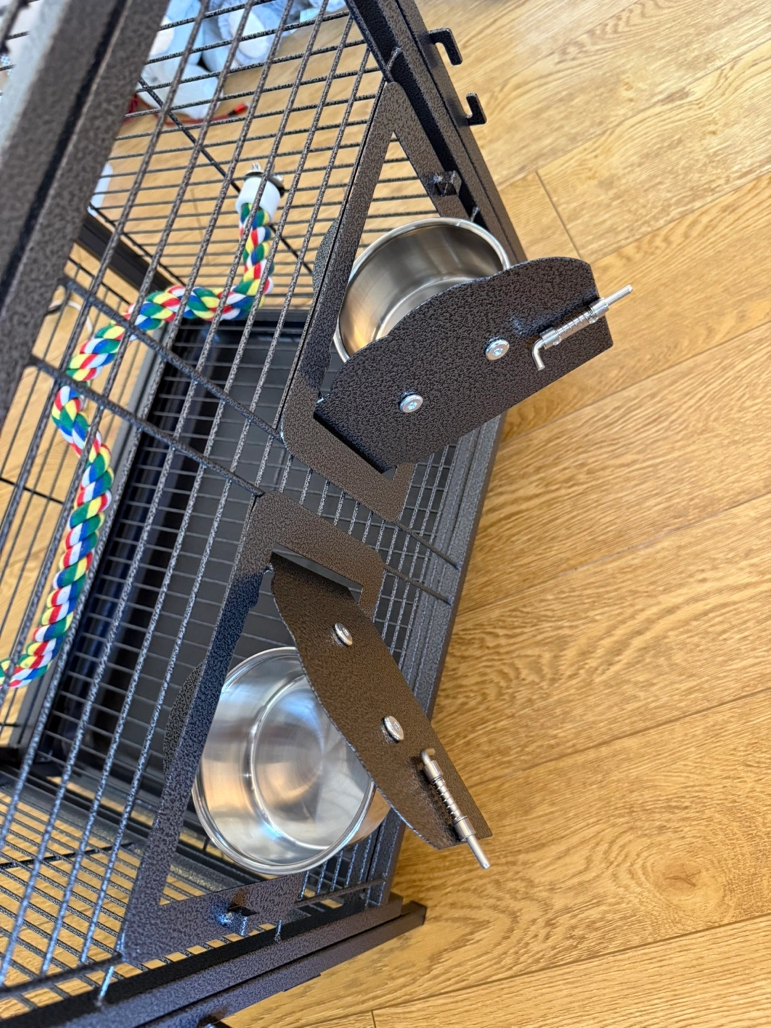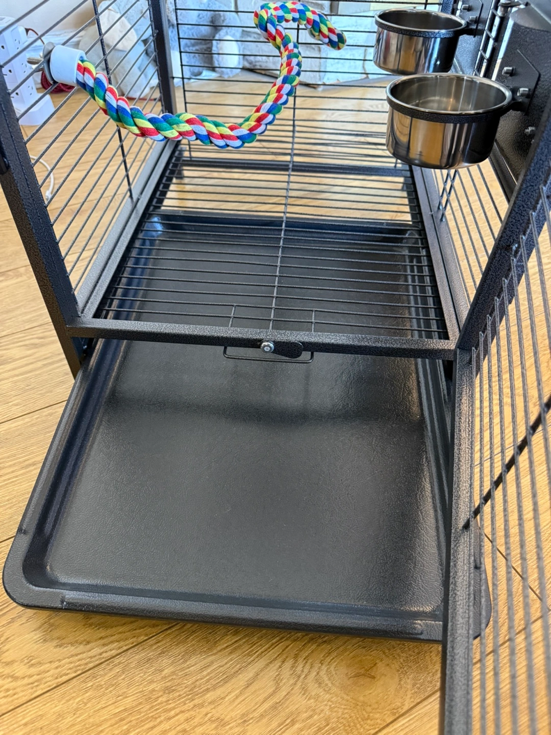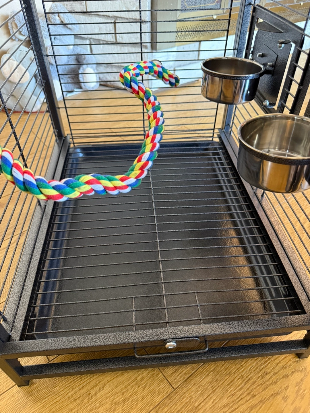 Selling a VivoHome bird carrier/ cage. Brand new. Already assembled but never used. stainless steel bowls and a colourful rope perch. Very easy to add more perches. Premium low carbon steel frame that is wear and rust resistant. 18.7”Lx14.9” Wx18” H. 0.79”(20 mm) space between wires makes it perfect for Parrots Conures Lovebird Cockatiel and Parakeets. Wooden perch at top which is also a handle to carry the cage. Removable waste tray and a big side door for convenience.