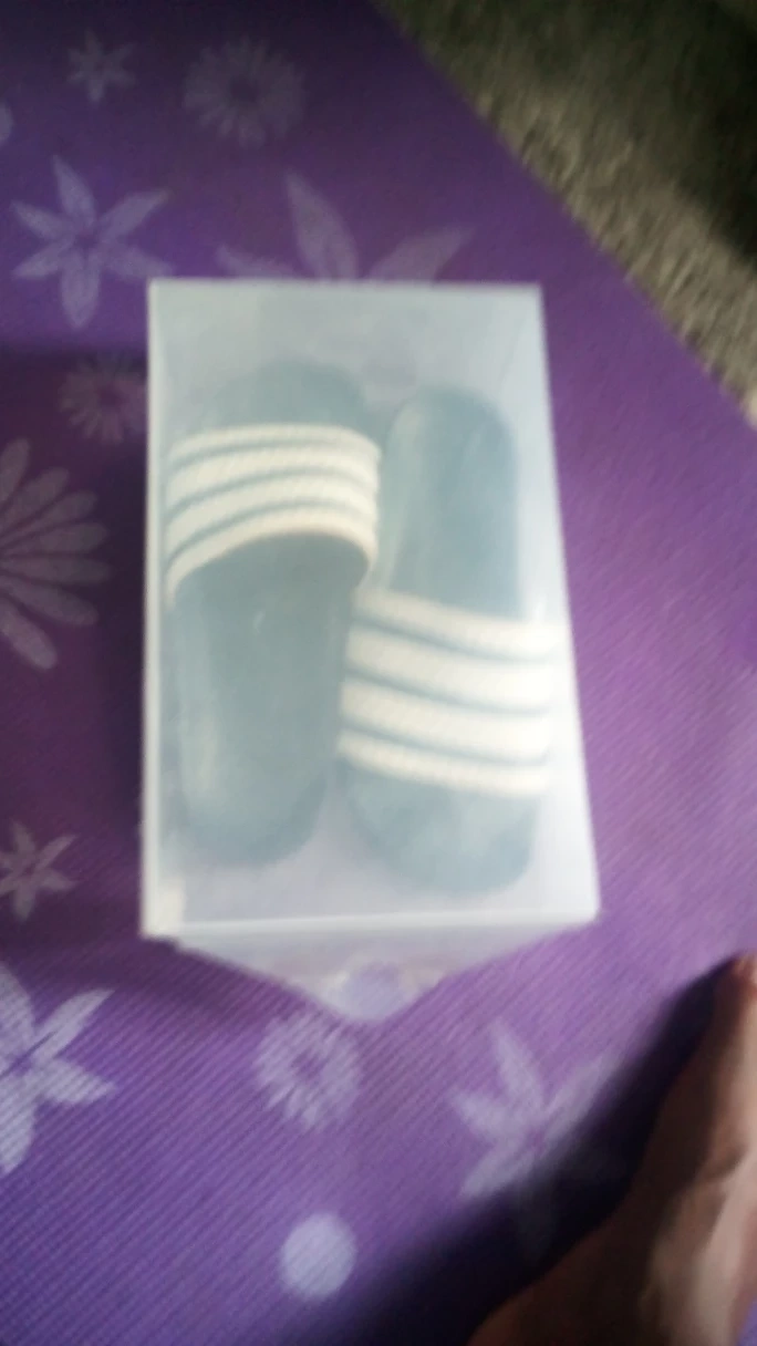 Giving away for free a pair of Adidas Adilette slides of medium size feet.. They are blue with white stripes. The slides come with their original box. Size is unknown, please refer to the photos! Pick up St Clair West and Christie St