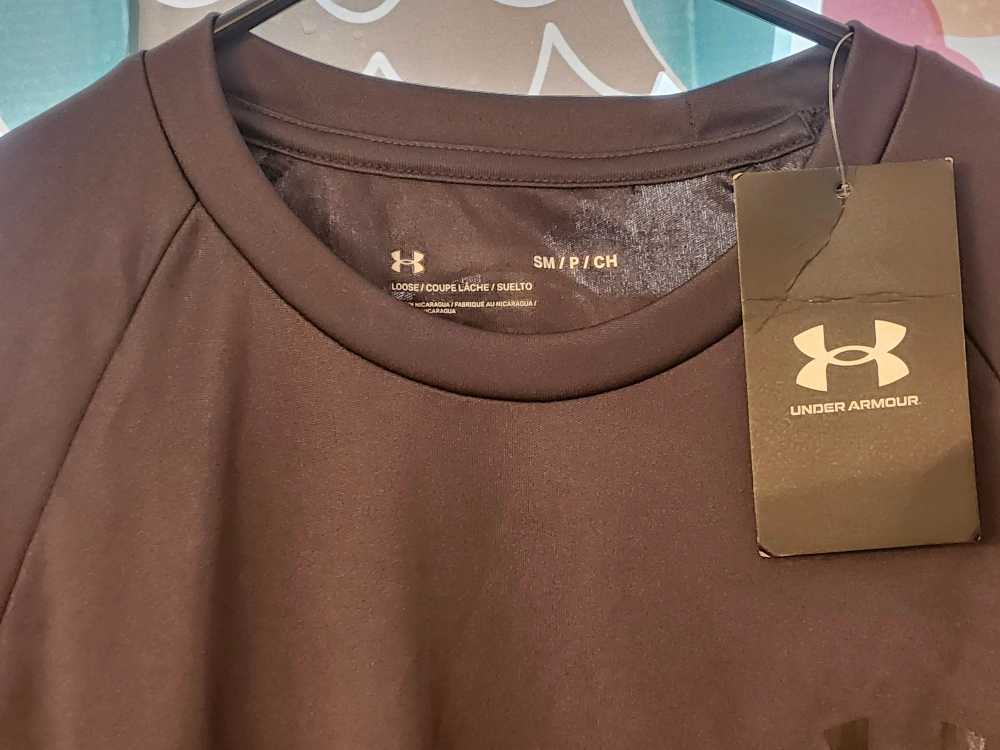 This is a brand new Under Armour t-shirt with the tags still on it! It's a size small and is a dark brown colour. Perfect for working out or everyday wear!