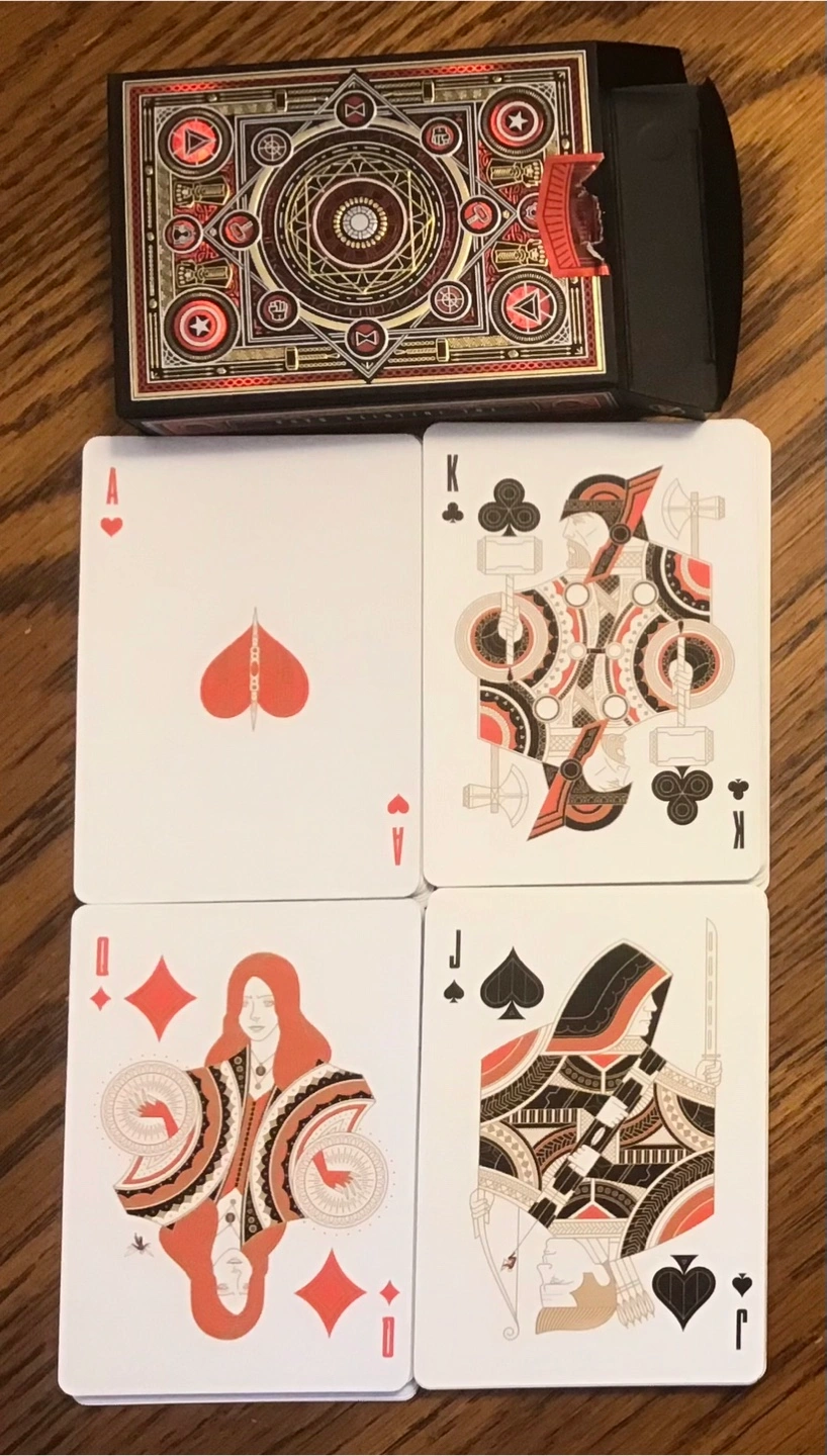 Selling a deck of Marvel Avengers Theory11 premium playing cards! The cards feature a unique design with Avengers characters and symbols. The box is included 🤩