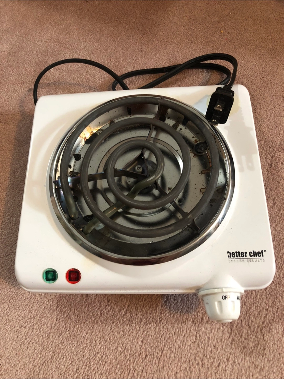 Selling a Better Chef electric countertop range, model IM-305SB. It's in good working condition and comes with the original box. This range has adjustable heat control, non-skid rubber feet for added stability, and an easy-to-clean enamel exterior. It's a perfect helper for any occasion and provides 1000 watts of cooking power for any recipe