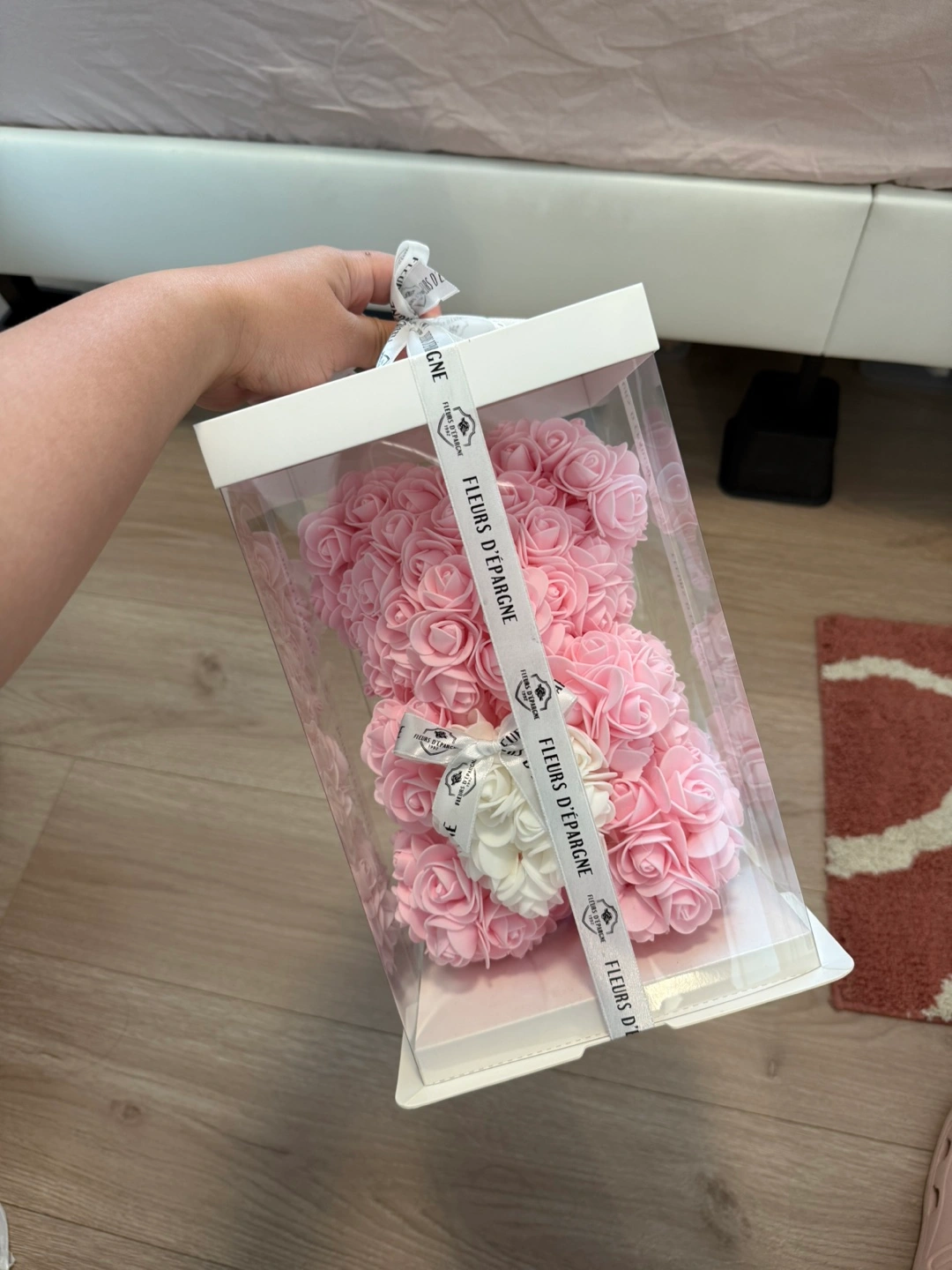 Selling a brand new Fleurs d'Épargne rose bear! It's a beautiful pink colour and comes in its original box. This would make a lovely gift for someone special or a nice addition to your decor