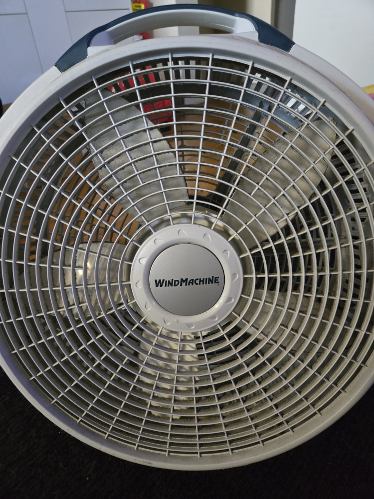 Selling a WindMachine floor fan. It's in used condition, as you can see in the photos. Great working condition. 3 speeds.