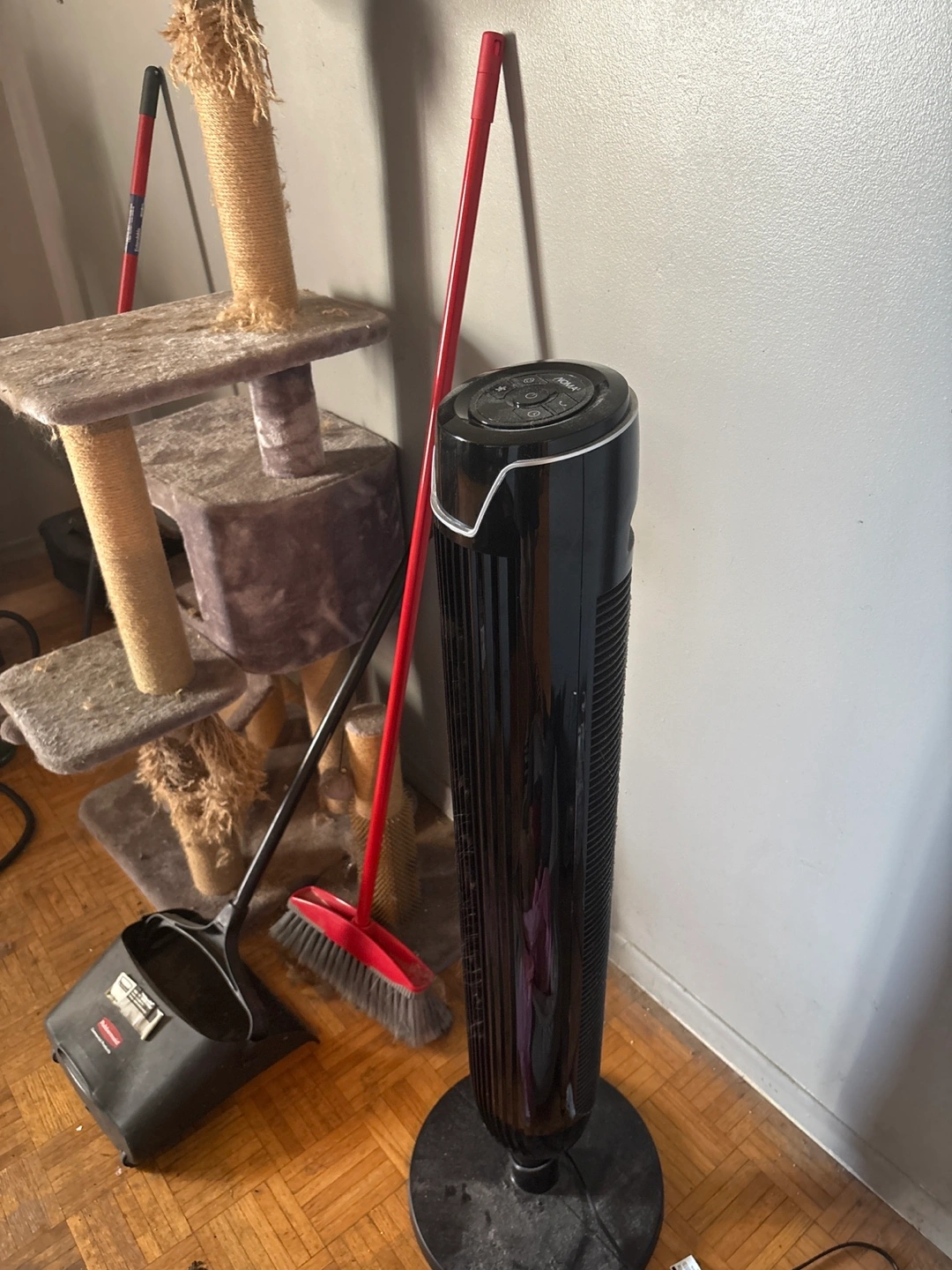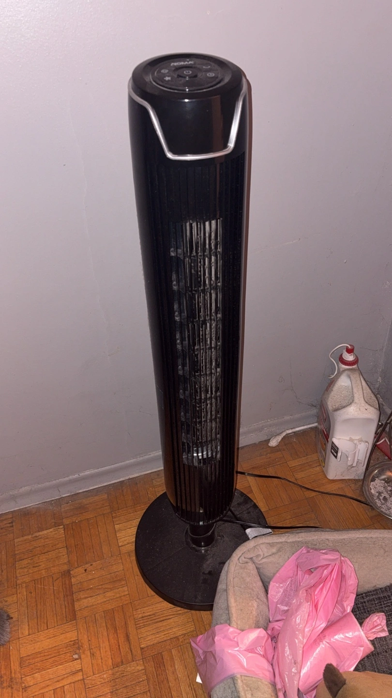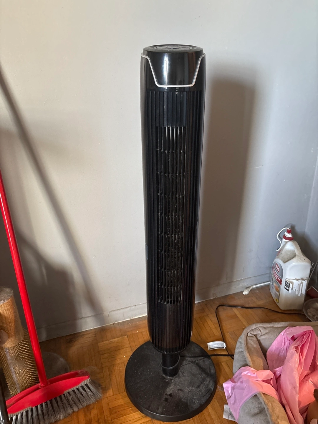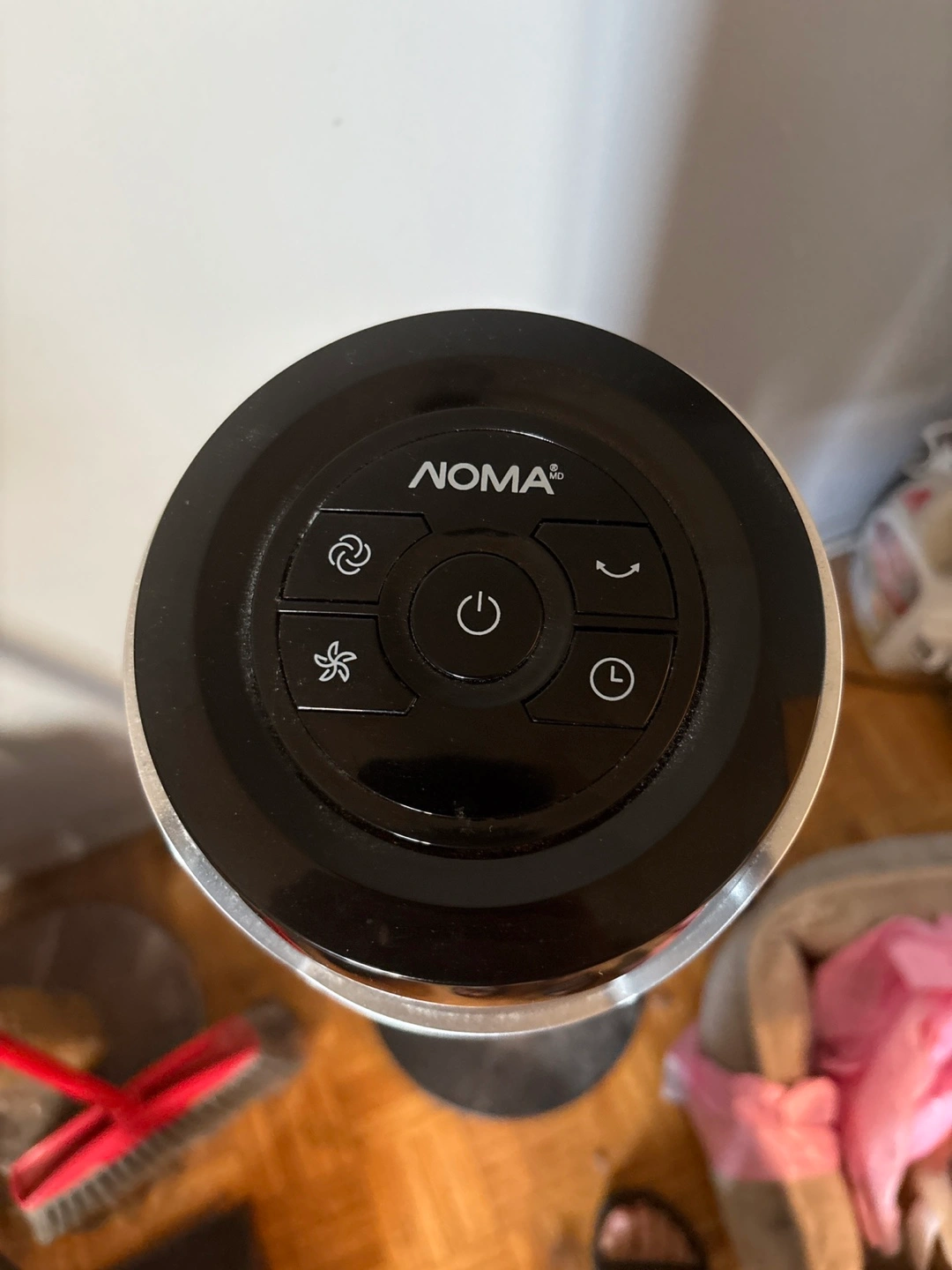Selling a NOMA tower fan in black. It has a sleek design and is perfect for keeping cool during the summer months. It's in good condition and works great!