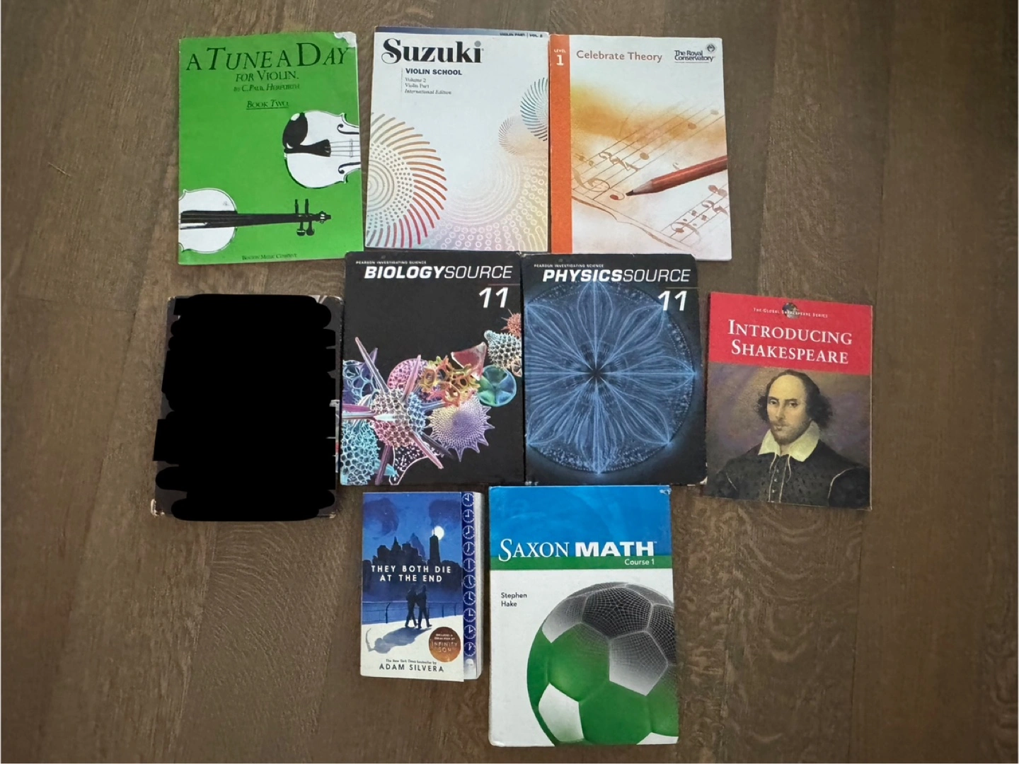 Selling a mixed lot of school textbooks, including: - A Tune A Day for Violin, Book Two - Suzuki Violin School - Celebrate Theory - Biology Source 11 - Physics Source 11 - Introducing Shakespeare - They Both Die at the End by Adam Silvera - Saxon Math Course 1 by Stephen Hake Please send me your offers