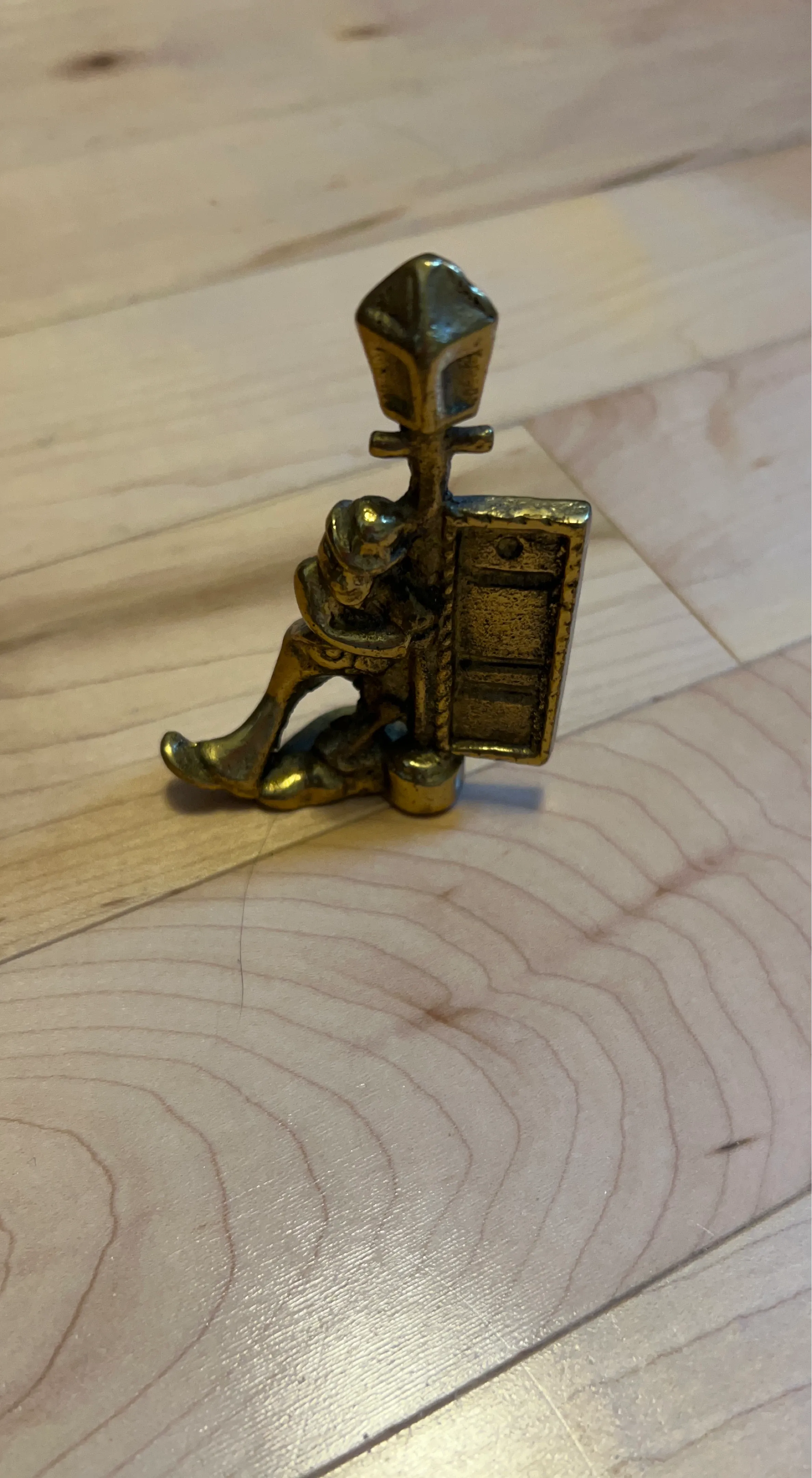Buy & SellBrass Figurine of Knight with ShieldBrass Figurine of Knight with Shield$12A small brass figurine depicting a knight holding a shield. It's made of brass and would make a unique decorative item.WHERE TO MEETCheck LocationView MapSELLERErinmcGlen Cairn100 reviews0 chats·0 favorites·3 viewsSEND CHAT TO SELLERHi Erinmc! I’m interested in your listing.Hi Erinmc! I’m interested in your listing.Get the Karrot app to chatSign In to chat