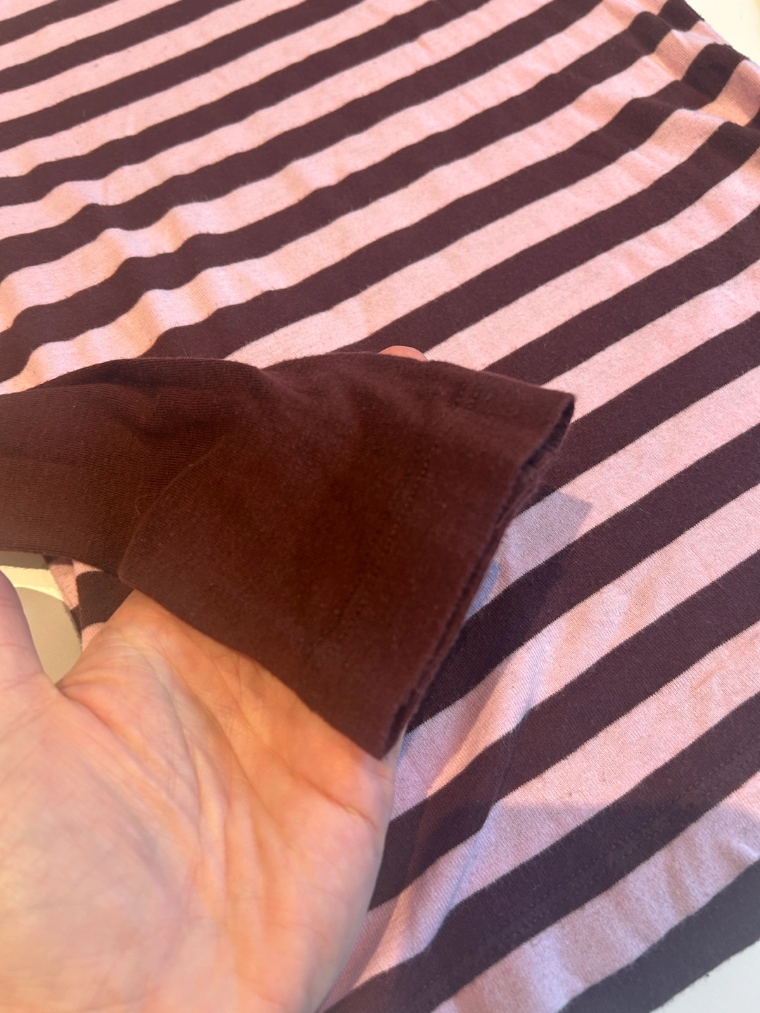 Super cute (and soft!) Lacoste long-sleeve too in pink and burgundy! Size 36 (small), made in Peru, designed in France. That croc is so cute 🐊 ☺️ minor imperfection (see pic) at the top in the back—not visible at all, probably from the tag.