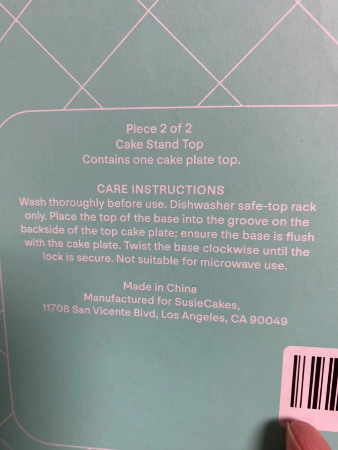 Selling a new SusieCakes cake stand top! It's piece 2 of 2 and contains one cake plate top. Brand new still in packaging.