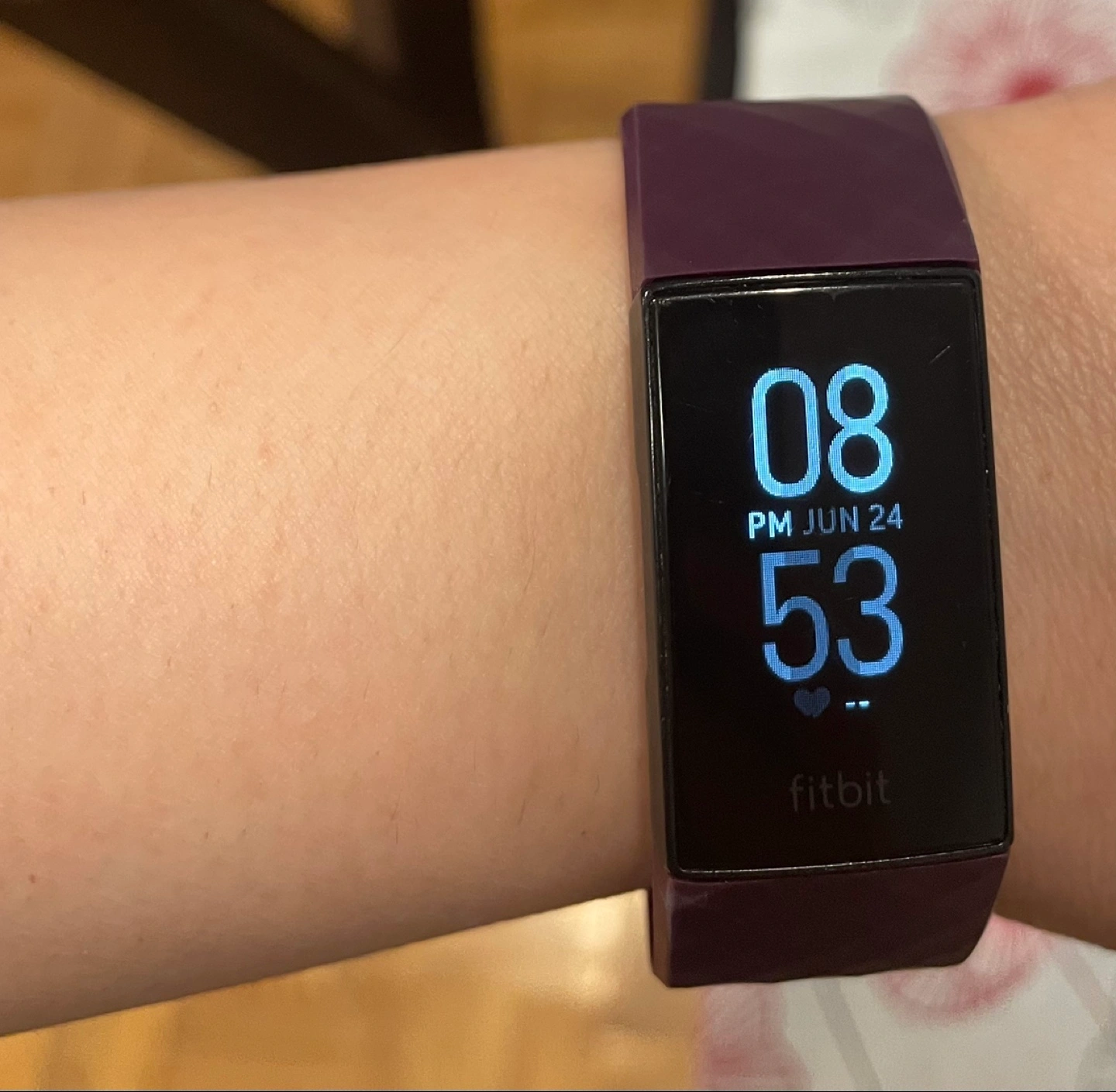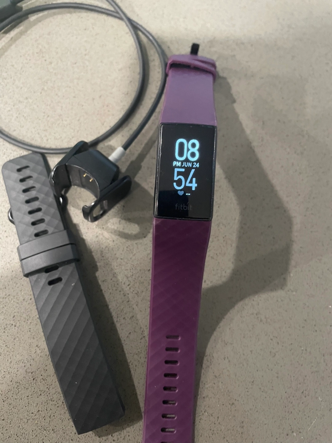 Selling my Fitbit Charge 4 in plum! It comes with an extra black band and a charger. It's in great condition and ready for a new owner who wants to track their fitness journey Charger included Good condition Battery lasts 5-6 days