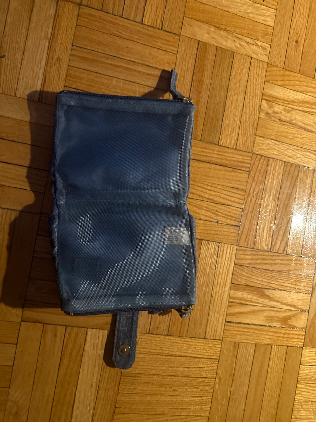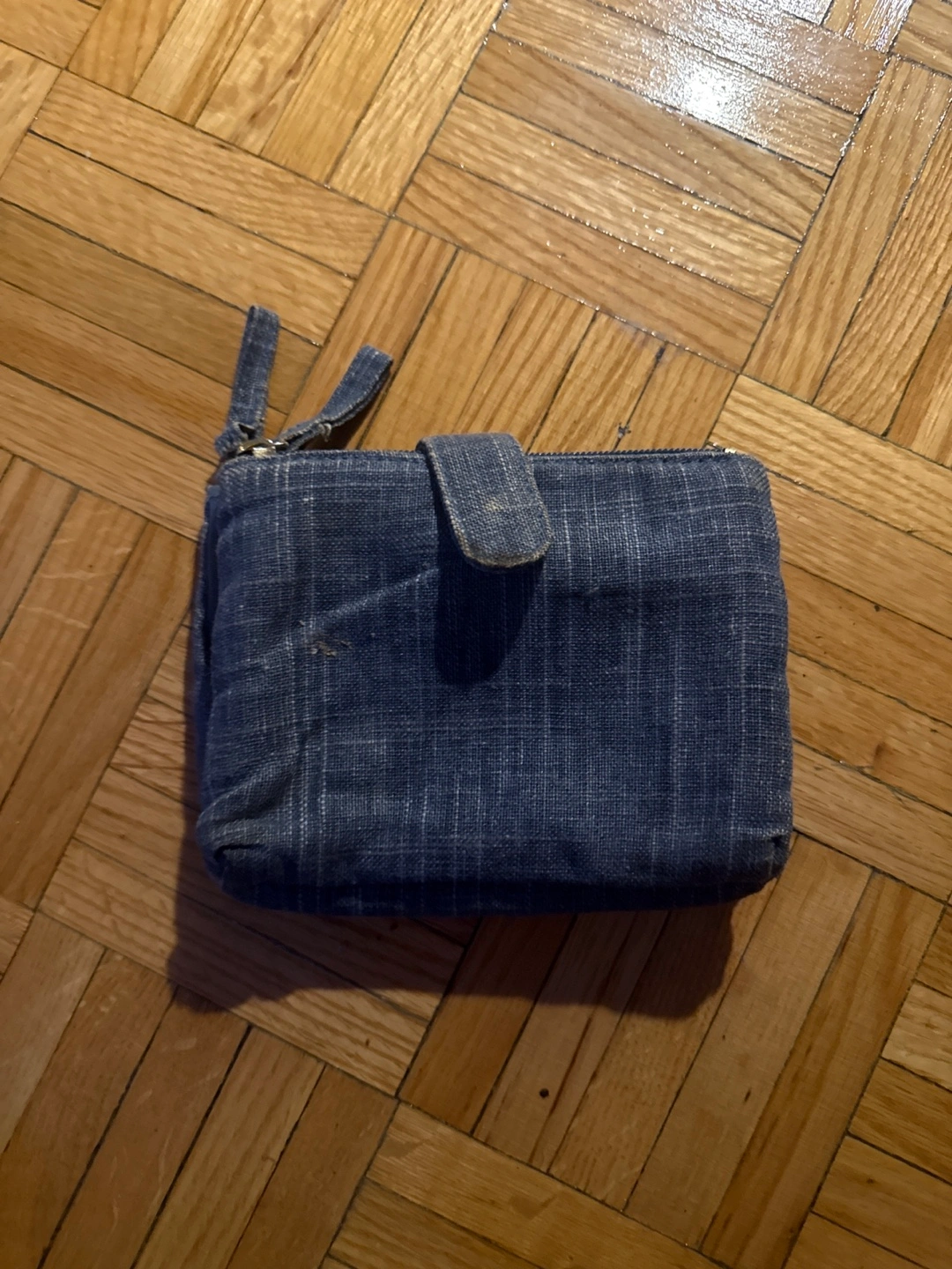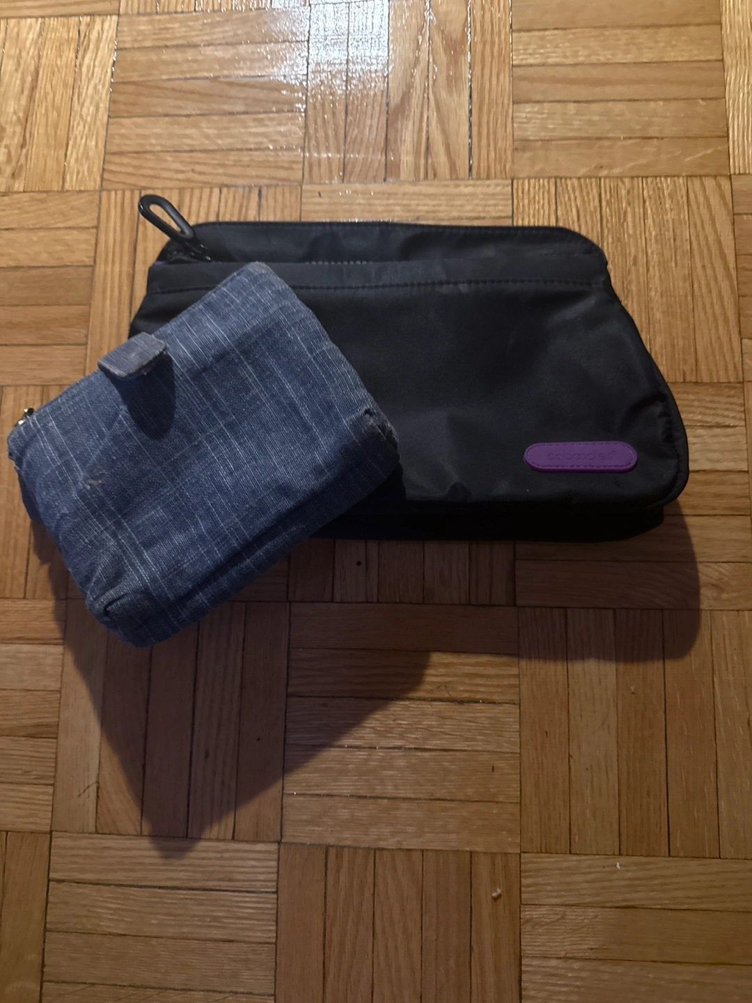 Selling a blue denim wallet. It's in used condition, but still has lots of life left! Also selling a black makeup case/ toiletry bag ๐ผ Both of them Iโm seeking for $5.00 each or $10.00 for both