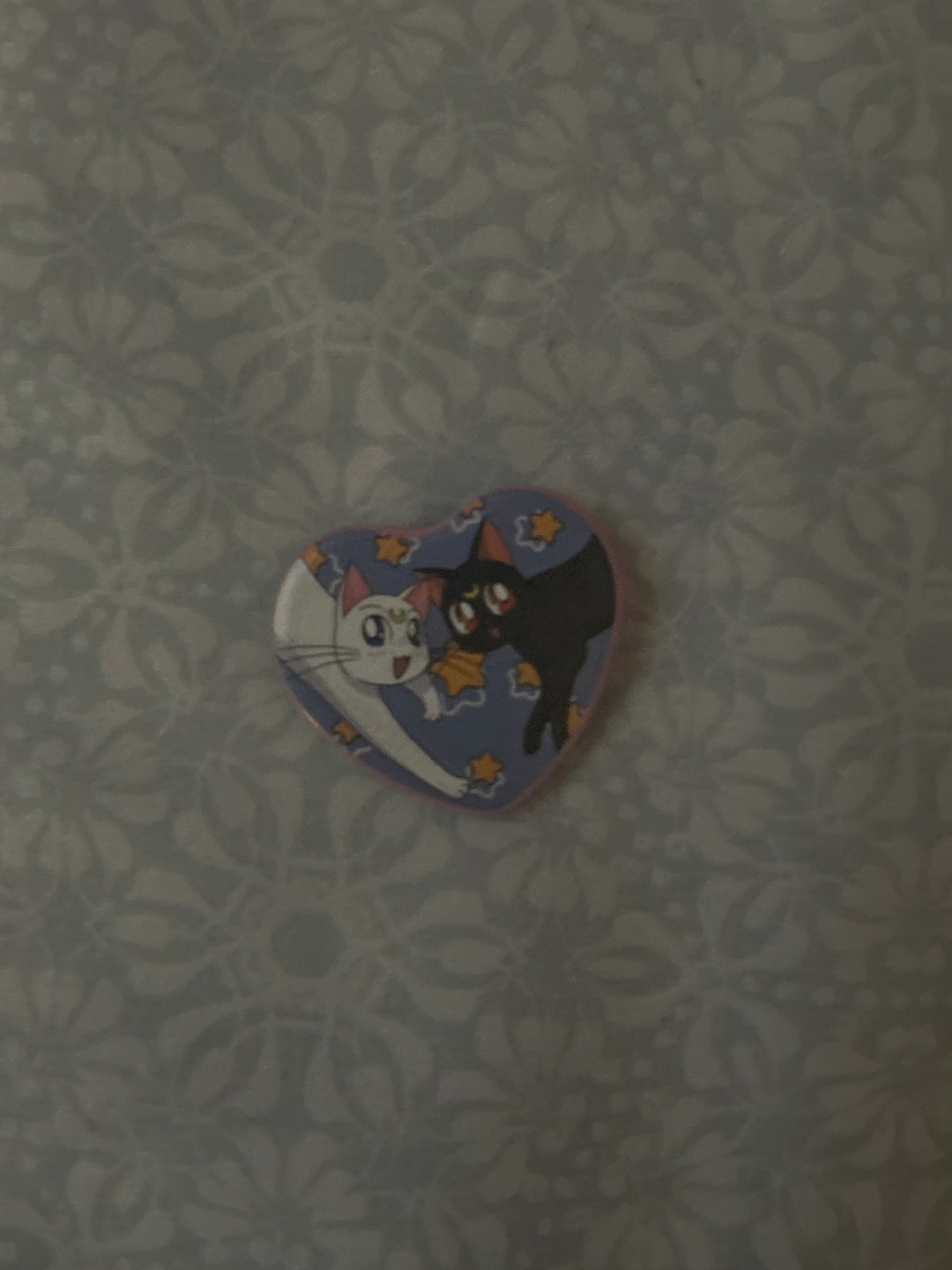 Cute heart-shaped pin featuring Luna and Artemis from Sailor Moon! Perfect for adding a touch of nostalgia to your jacket, bag, or pin collection